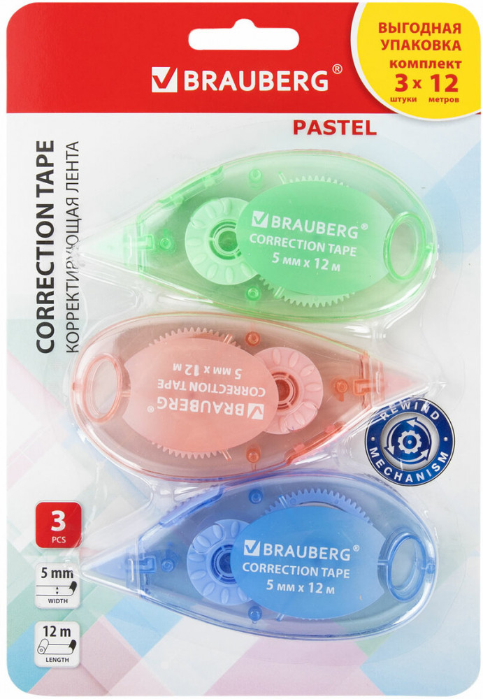 💳 Оплатить за товар можно при получении 🇰🇿 Есть бесплатная доставка по Казахстану от 1 дня 🎁 Копите бонусы с каждой покупки Серия: Pastel Корректирующая лента Brauberg Pastel предназначена для мгновенного исправления рукописных и печатных текстов. Пастельный дизайн идеально подходит для школы, офиса и дома. Выгодный формат упаковки — набор из 3 штук! Нежный дизайн корпуса представлен в 3-х пастельных цветах: розовом, голубом и зеленом. Общая длина корректирующей ленты — 12 м, ширина — 5 мм. |