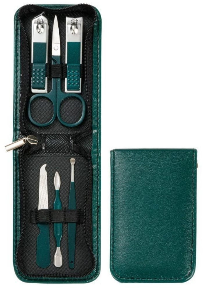 Это маникюрный набор в стильном футляре черного цвета. Он включает в себя две разновидности ножниц для ногтей, маникюрные ножницы, пилочку для ногтей, два маникюрных пушера (для кутикулы), пинцет. Футляр выполнен из искусственной кожи с аккуратной прострочкой, удобно закрывается и идеально подходит для хранения и транспортировки. Компактный размер позволяет носить его с собой в сумке или косметичке. |