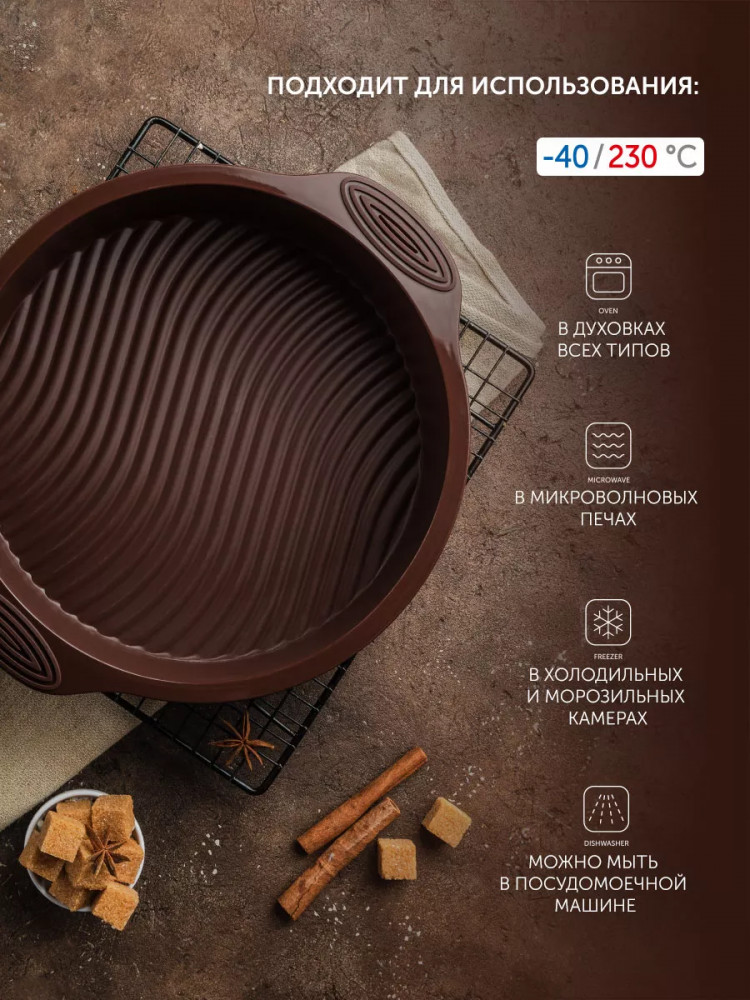 Nadoba Форма для выпечкиВ данный момент этот товар отсутствует в продаже. Возможно, у нас найдется аналогичный или похожий товар здесь. Серия: Alenka Формы для выпечки Alenka изготовлены из высококачественного жаропрочного силикона, отвечающего самому строгому европейскому стандарту качества LFGB (Германия). Формы обладают широким диапазоном рабочих температур от −40 °С до +230 °С. В Alenka выпечка безупречно пропекается, не пригорает и легко вынимается. Изделия подходят для любых видов духовок, микроволновой печи и морозильной камеры. Формы идеальны для приготовления пирога, заливного, холодца мусса, желе, мороженного и др. |
