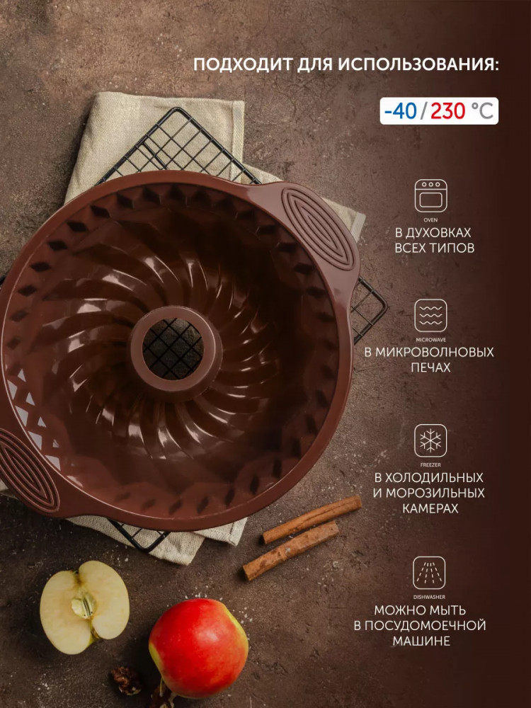 Nadoba Форма для круглого кекса глубокаяВ данный момент этот товар отсутствует в продаже. Возможно, у нас найдется аналогичный или похожий товар здесь. Серия: Alenka Формы для выпечки Alenka изготовлены из высококачественного жаропрочного силикона, отвечающего самому строгому европейскому стандарту качества LFGB (Германия). Формы обладают широким диапазоном рабочих температур от −40 °С до +230 °С. В Alenka выпечка безупречно пропекается, не пригорает и легко вынимается. Изделия подходят для любых видов духовок, микроволновой печи и морозильной камеры. Формы идеальны для приготовления пирога, заливного, холодца мусса, желе, мороженного и др. |