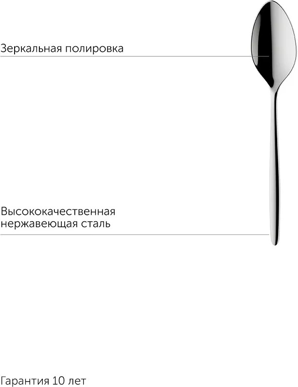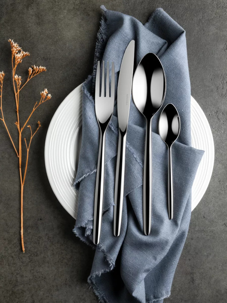 Столовые приборы серии Mía изготовлены из высококачественной нержавеющей стали. Они устойчивы к механическим повреждениям и воздействию любых сред, не меняют вкус блюд и долгое время сохраняют превосходный вид благодаря высокой степени полировки. Гарантия на столовые приборы серии Mía 10 лет.