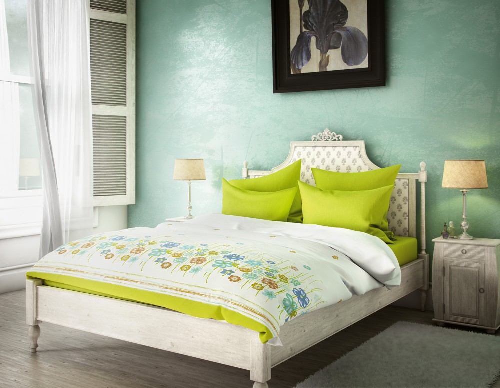 Белье хорошего качества, хотя ожидала большего. На фоне зеленоватой простыни и наволочек, пододеяльник смотрится весело. Недостаток. Хотелось бы, чтобы простыня была шире и закрывала боковины кровати.