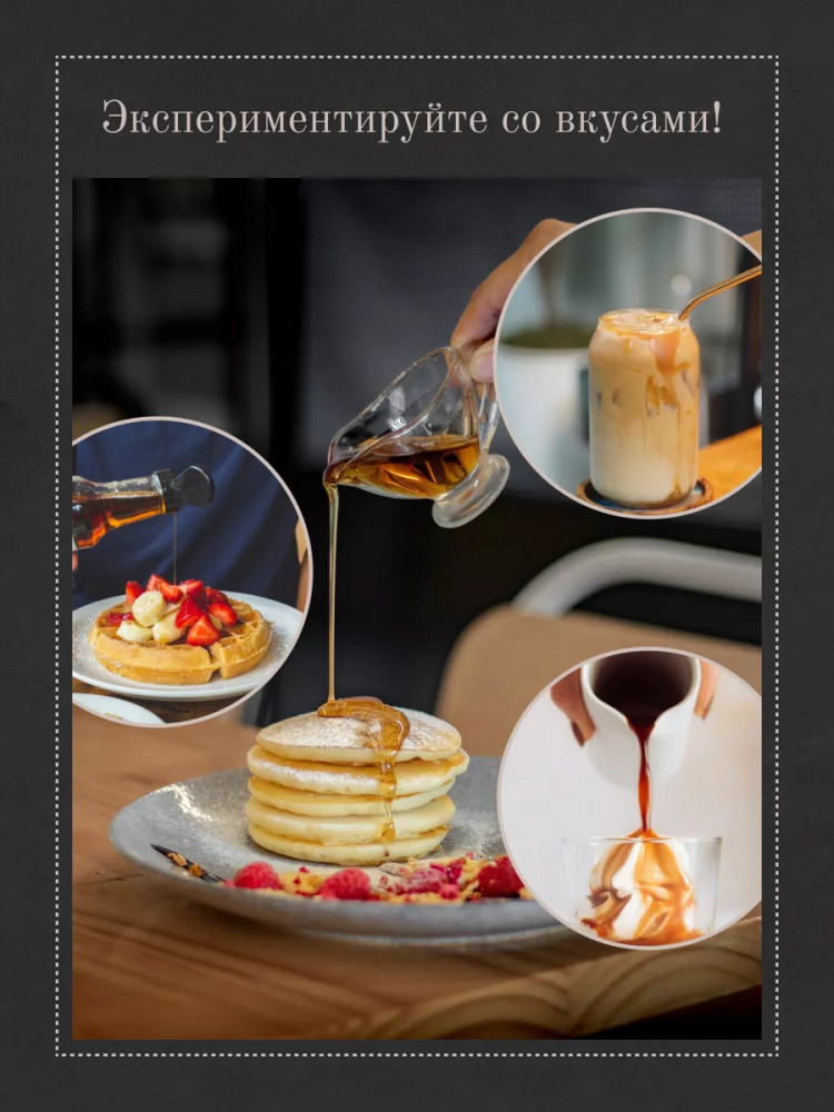 • и это еще не все! С нашим сиропом вы сможете приготовить великолепную сладкую выпечку, пропитать коржи, приготовить яркие кремы и соусы. Как топпинг к мороженому и кондитерским изделиям, он поразит вас своими чистыми и натуральными вкусами и ароматами;