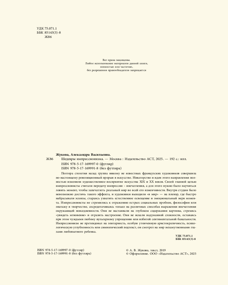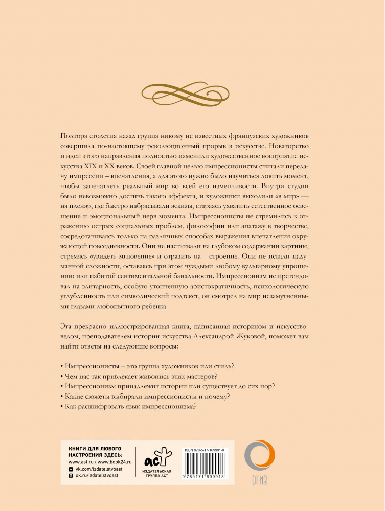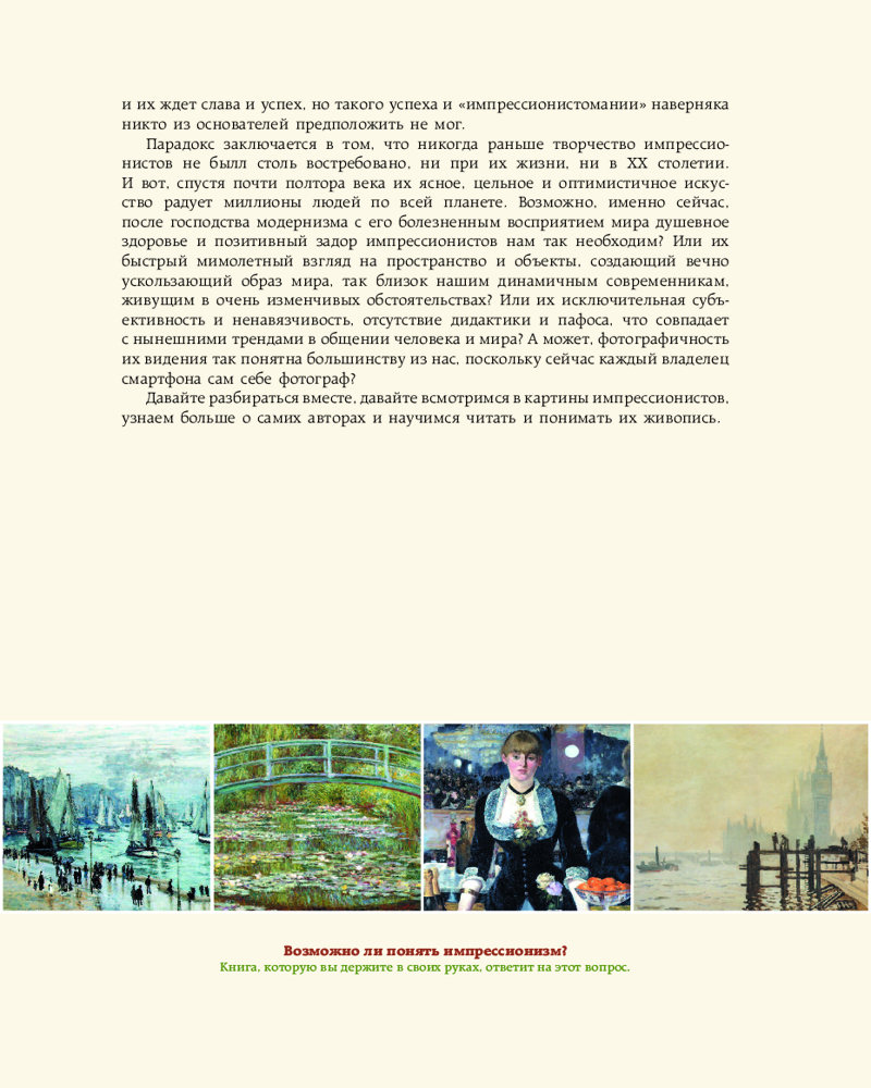 💳 Оплатить за товар можно при получении 🇰🇿 Есть бесплатная доставка по Казахстану от 1 дня 🎁 Копите бонусы с каждой покупки Серия: Большая подарочная книга Полтора столетия назад группа никому не известных французских художников совершила по-настоящему революционный прорыв в искусстве. Новаторство и идеи этого направления полностью изменили художественное восприятие искусства XIX и XX веков. Своей главной целью импрессионисты считали передачу импрессии — впечатления, а для этого нужно было научиться ловить момент, чтобы запечатлеть реальный мир во всей его изменчивости. Внутри студии было невозможно достичь такого эффекта, и художники выходили «в мир» — на пленэр, где быстро набрасывали эскизы, стараясь ухватить естественное освещение и эмоциональный нерв момента. |