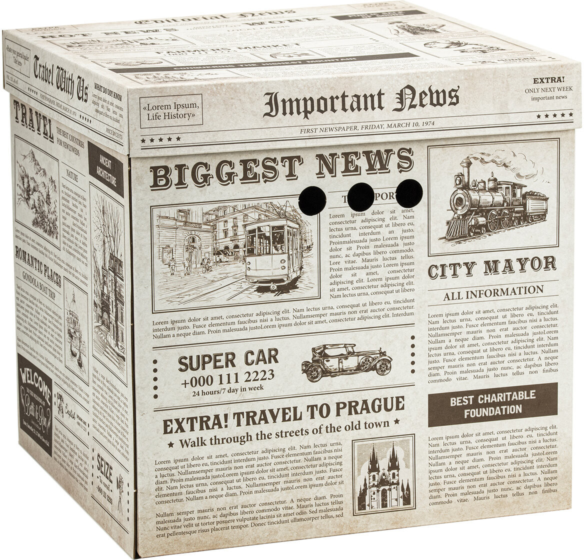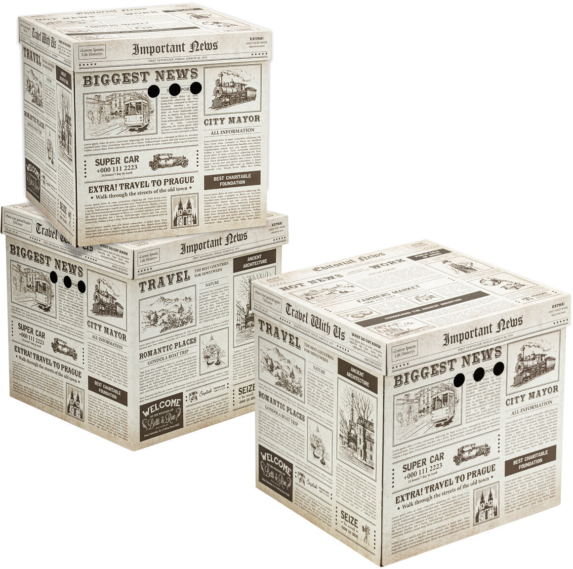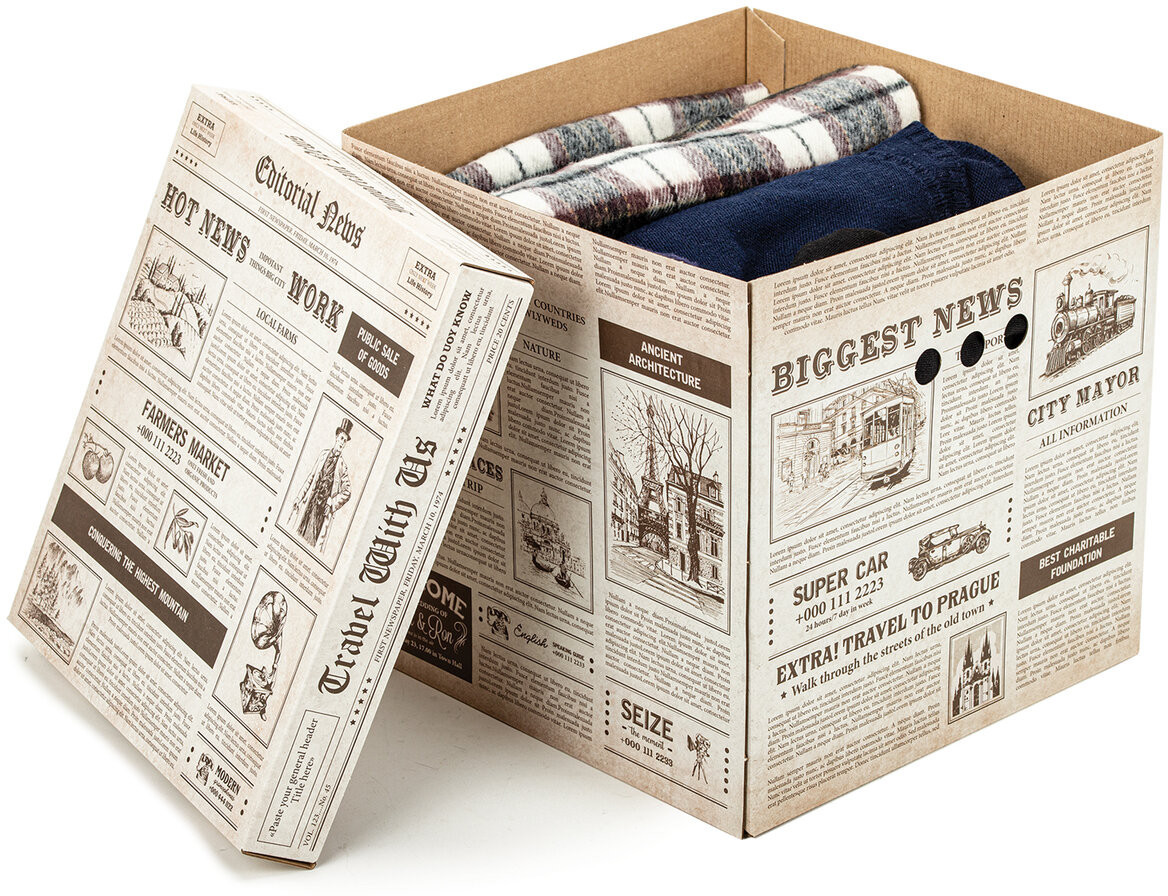 плотный картон, собираются легко, рисунок ретро, вместительные