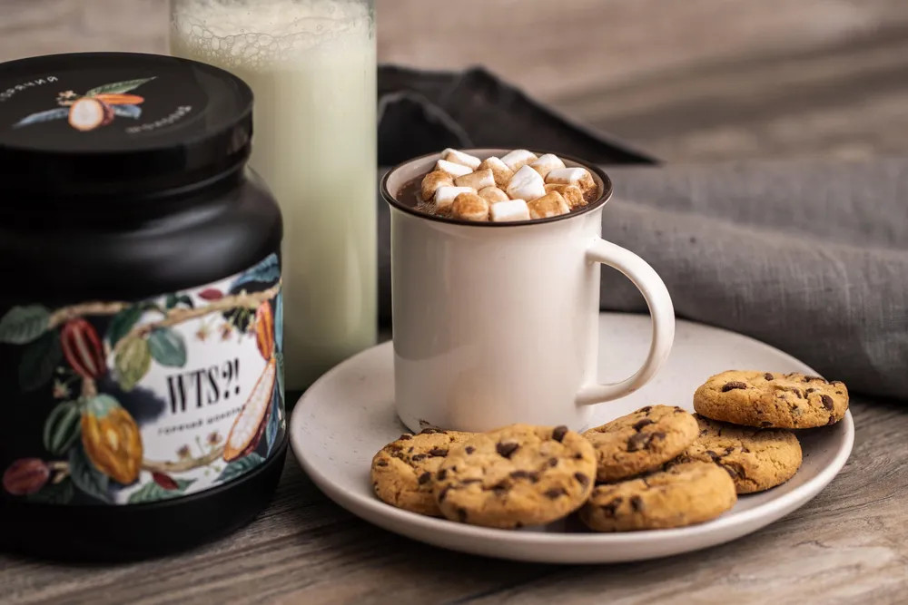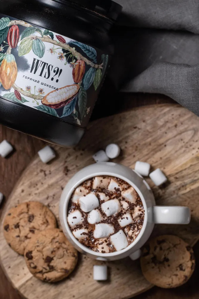 «Горячий шоколад WTS?!» — это густой и насыщенный напиток, который имеет вкус качественного, натурального темного шоколада. В нем сохранены все ценные и полезные свойства. «Горячий шоколад WTS?!» обладает сильными тонизирующими свойствами. Он заряжает энергией, бодрит и снимает усталость. Благодаря своему неповторимому вкусу и множеству полезных свойств, горячий шоколад стал одним из популярнейших десертов во многих странах мира. Основными точками реализации являются кофейни. Существуют и другие специализированные форматы, где акцент делается именно на горячий шоколад.