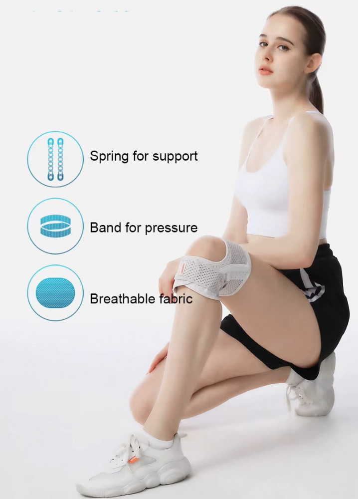 Наколенники с боковыми стабилизаторами для уменьшения боли в колене, артрит, травмы, восстановление, дышащая поддержка колена Технология поддержки колена размещены пружинные стабилизаторы с эффектом памяти (4 пружины) с обеих сторон коленного бандажа, чтобы обеспечить достаточную компрессию и поддержку колена и надколенника, чтобы уменьшить давление, концентрированное на коленном суставе во время тяжелой работы и напряженных упражнений, эффективно облегчить боль в коленях.