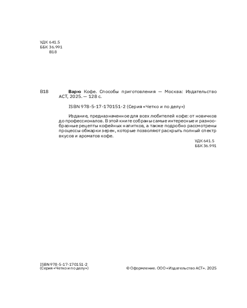 💳 Оплатить за товар можно при получении 🇰🇿 Есть бесплатная доставка по Казахстану от 1 дня 🎁 Копите бонусы с каждой покупки Серия: Четко и по делу Издание, предназначенное для всех любителей кофе: от новичков до профессионалов. В этой книге собраны самые интересные и разнообразные рецепты кофейных напитков, а также подробно рассмотрены процессы обжарки зерен, которые позволяют раскрыть полный спектр вкусов и ароматов кофе. |