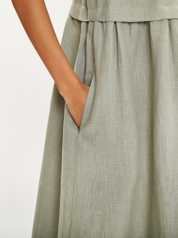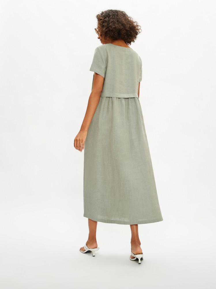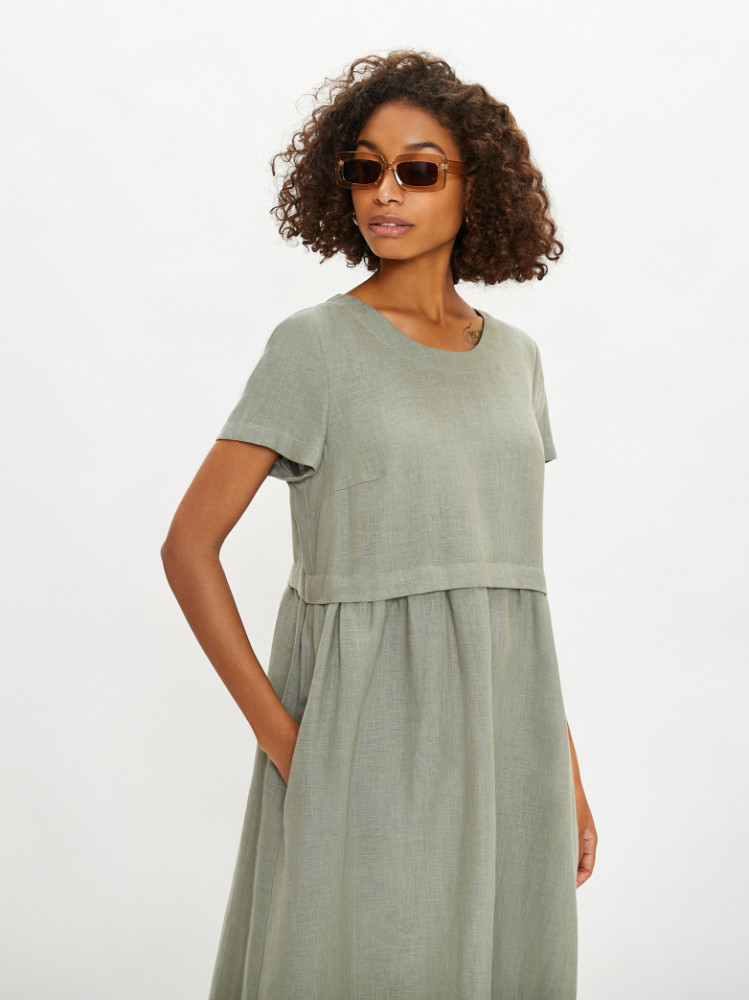 Длинное платье в стиле бохо из тонкой льняной ткани отражает актуальные тренды Лета-2025. Его продуманный крой сочетает комфорт и элегантность: зауженный прямой верх с лёгкими боковыми вытачками у груди обеспечивает аккуратную посадку, а пышная юбка не обтягивает фигуру, создавая свободу движений и комфорт в жаркую погоду. Слегка завышенная линия талии с кантом визуально стройнит и подчёркивает женственный силуэт. Глубокий круглый вырез гармонично дополняет классические втачные рукава короткой длины, а карманы в боковых швах делают модель практичной и удобной. Платье представлено в различных цветовых вариантах и идеально подойдёт для повседневной носки и отдыха, сочетая в себе лёгкость, стиль и функциональность.