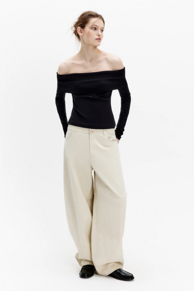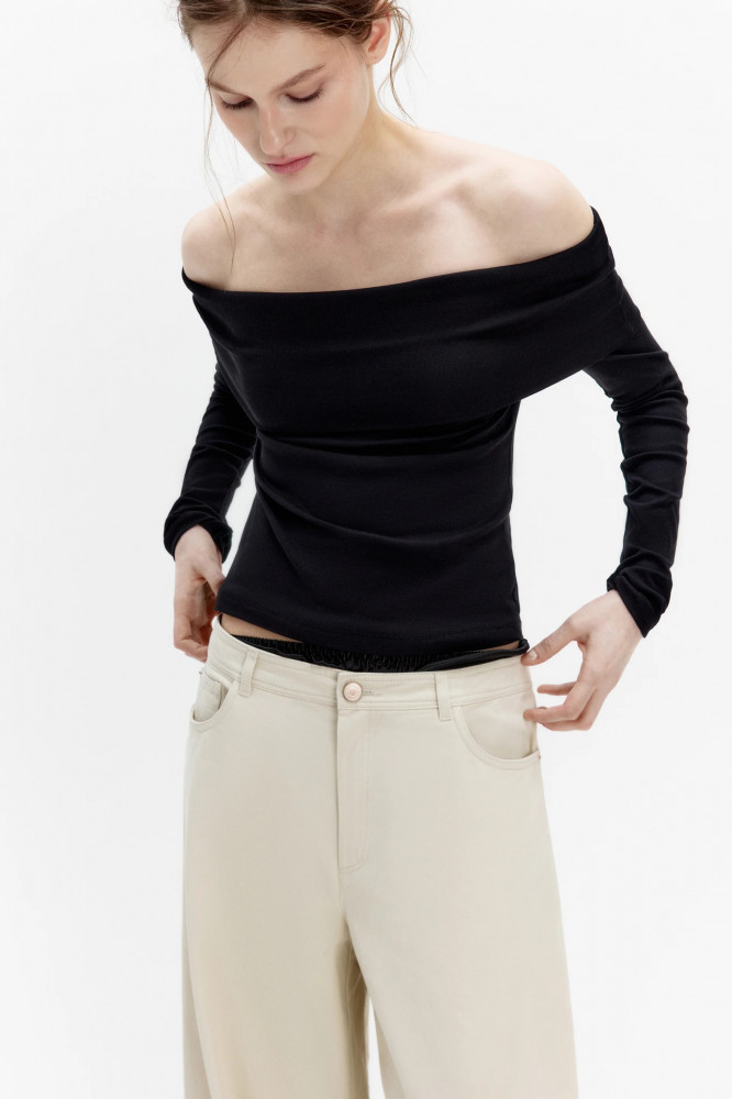 Женский лонгслив приталенного кроя из мягкой, дышащей и очень приятной к телу хлопковой ткани. Вырез-лодочка горловины с открытыми плечами и широким отворотом. Длинные облегающие рукава с прямыми манжетами. Прямой нижний край без разрезов. Однотонный лонгслив с открытыми плечами добавит нежности и женственности любым образам. Носи его с мини-юбкой поверх широких брюк, смело выражая свою индивидуальность. Создавай с однотонным топом офф-шолдерс образ «офисной сирены», надевая с юбкой-карандаш и острыми лодочками. Создавай мягкие и удобные аутфиты с вязаным низом. Отдай дань 2000-м и носи его с остающимися в тренде капри. Идеальный вариант для образов на учебу или в офис. Лонгслив с открытыми плечами станет базой весенних аутфитов и подчеркнет женственность. Заверши образ удобной обувью и любимыми аксессуарами.