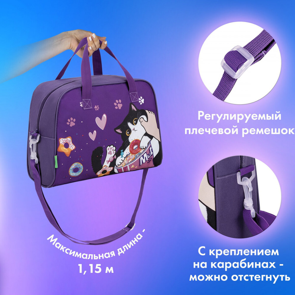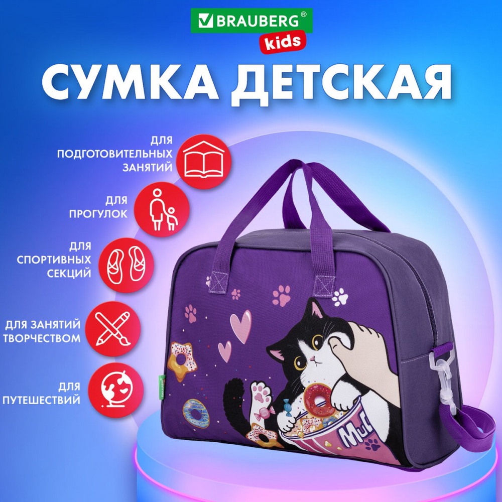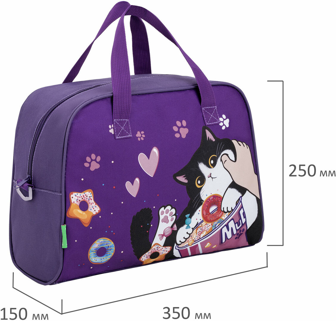 Сумка для внешкольных занятий с плечевым ремнем, подкладкой Brauberg Kids с ручками, подходит как для сменной обуви, так и для физкультурной формы и сменной одежды для факультативных и спортивных занятий.
