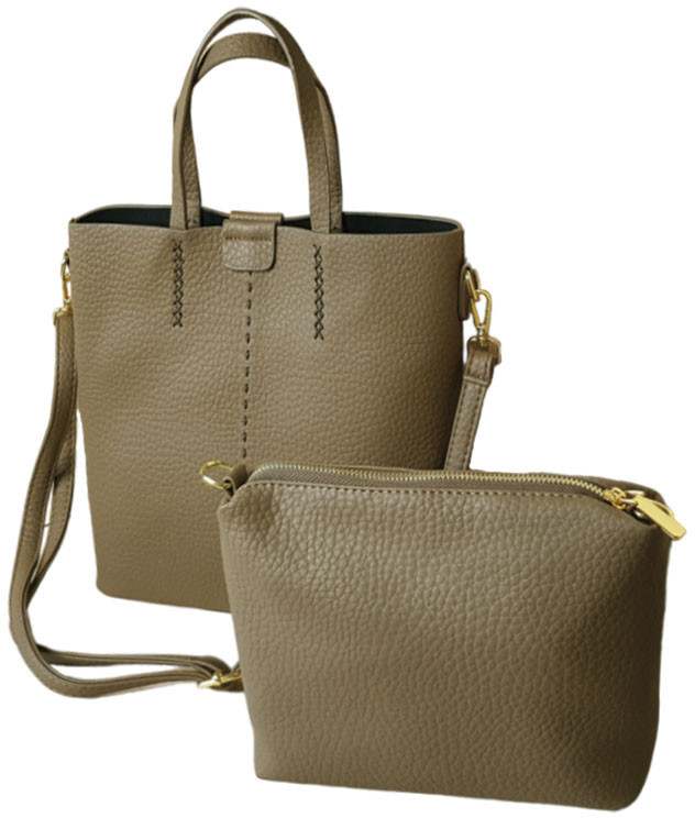 Данная сумка является комплектом, состоящим из двух единиц: непосредственно самой сумки и сумки-косметички, который можно разместить как внутри данной модели, так и носить отдельно. Комплект выполнен из мягкой экокожи, приятной на ощупь. Обратите внимание на такой важный момент, как легкость сумки, что является приятным дополнением к стильному дизайну данной модели. Комплект выполнен с высоким качеством: ровные строчки, аккуратная фурнитура, декоративные элементы. Обе сумки имеют металлические шлёвки для крепления ремня. Ремни легко регулируются по длине. Базовая сумка комплекта, закрывается при помощи магнита. Дизайн сумки искусно дополнен декоративными строчками, как у основания ручек (в виде плетения), так и по центру в виде вертикального шва. Внутренняя клатч-косметичка легко превращается в универсальную сумку кросс-боди, стоит только к ней закрепить отстегивающийся ремешок. Такую сумочку можно носить как на плече, так и через плечо. Минималистический дизайн и цвет сумки подойдет практически к любому наряду. В нашем магазине такой комплект представлен в актуальном бежевом и универсальном черном цветах. Порадуйте ли Вы себя или приобретете в подарок — в любом случае Вы на верном пути!