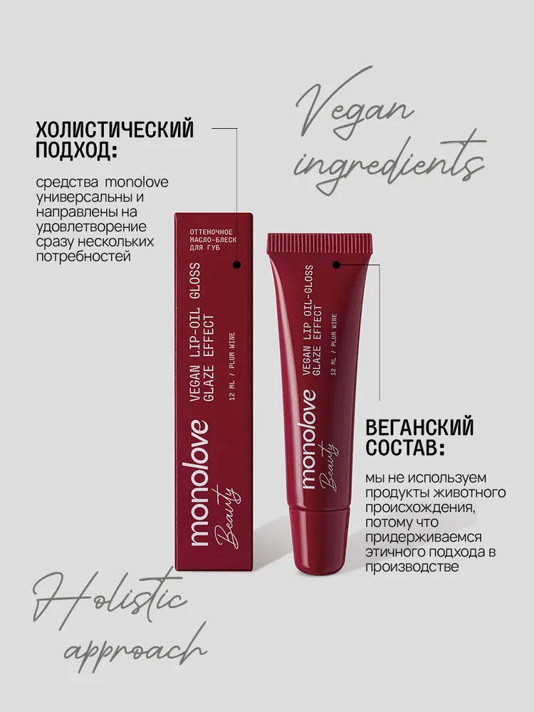Monolove Масло-блеск для губ «Beauty Vegan Lip-Oil Gloss Glaze Effect», тон Plum Wine