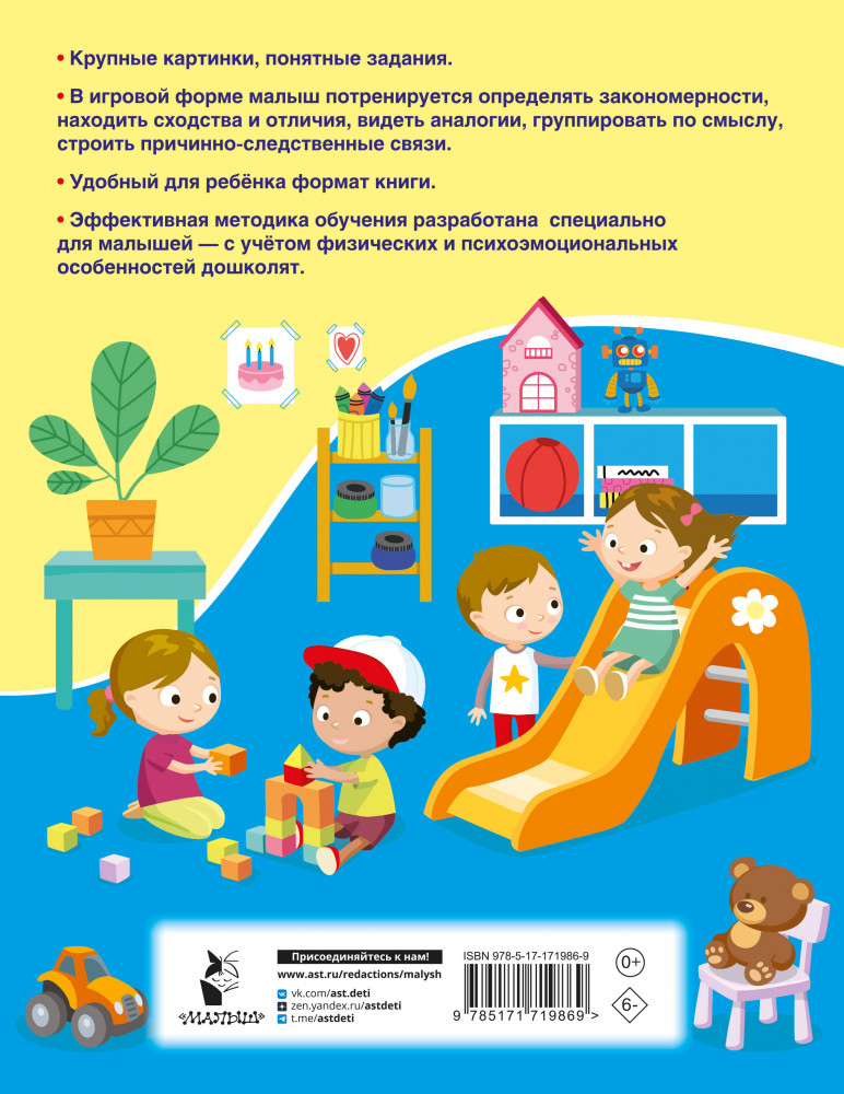 💳 Оплатить за товар можно при получении 🇰🇿 Есть бесплатная доставка по Казахстану от 1 дня 🎁 Копите бонусы с каждой покупки Серия: 1000 заданий для детского сада Книга «Логические задачки» поможет ребёнку сделать первые шаги на пути формирования логического мышления. В игровой форме малыш потренируется определять закономерности, находить сходства и отличия, видеть аналогии, группировать по смыслу, строить причинно-следственные связи. Для дошкольного возраста. |