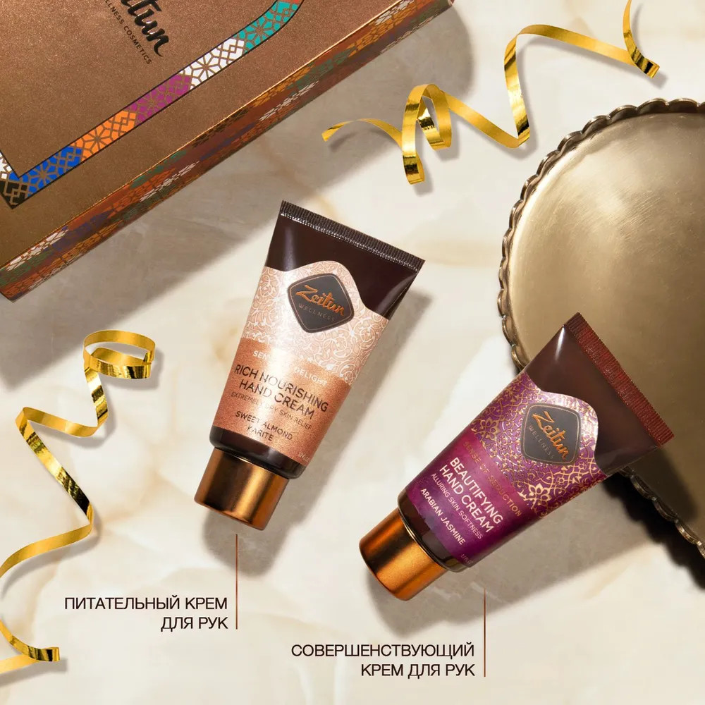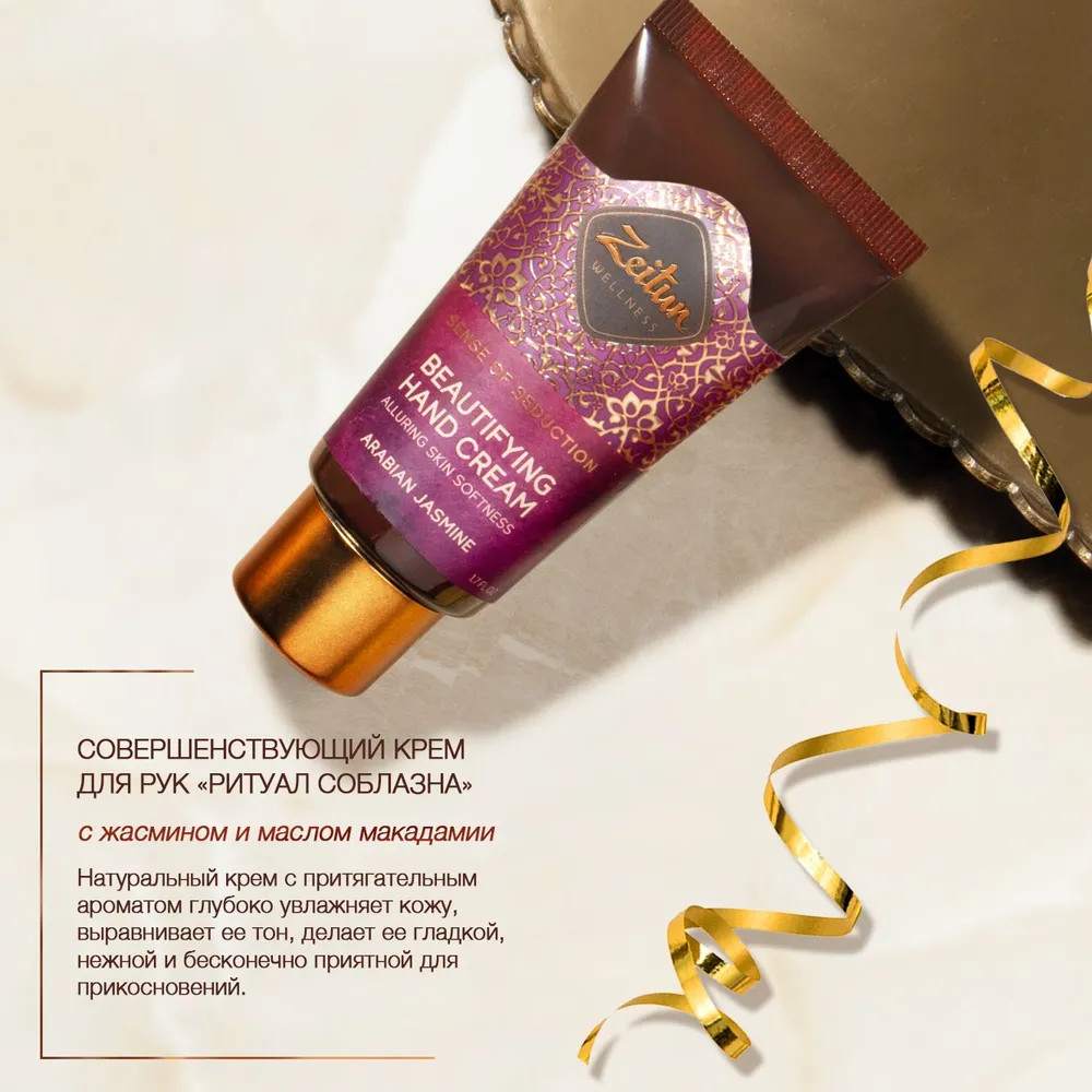 Крем для рук «Sense of seduction»: Aqua, Cetearyl Alcohol, Helianthus Annuus (Sunflower) Seed Oil, Hydroxyethyl Urea, Macadamia Ternifolia Seed Oil, Propylheptyl Caprylate, Butyrospermum Parkii (Shea) Butter, Glycerin, Potassium Cetyl Phosphate, Glyceryl Rosinate, Prunus Amygdalus Dulcis (Sweet Almond) Oil, Glycine Soja (Soybean) Oil, Olea Europaea (Olive) Oil Unsaponifiables, Hydrogenated Olive Oil Unsaponifiables, Tocopherol, Beta-sitosterol, Squalene, Panthenol, Allantoin, Tetrasodium Glutamate Diacetate, Glyceryl Stearate, Sodium Lauroyl Glutamate, Sodium Stearoyl Lactylate, Hydrogenated Ethylhexyl Olivate, Xanthan Gum, Jasminum Officinale (Jasmine) Flower Oil, Phenoxyethanol, Ethylhexylglycerin, Parfum, Linalool, Benzyl Alcohol, Benzyl Salicylate, Hexyl Cinnamal.