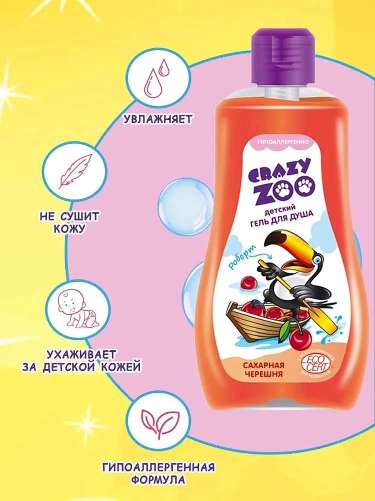 Crazy zoo Гель для душа детский «Сахарная черешня»