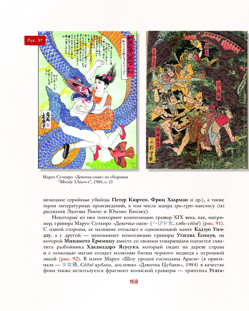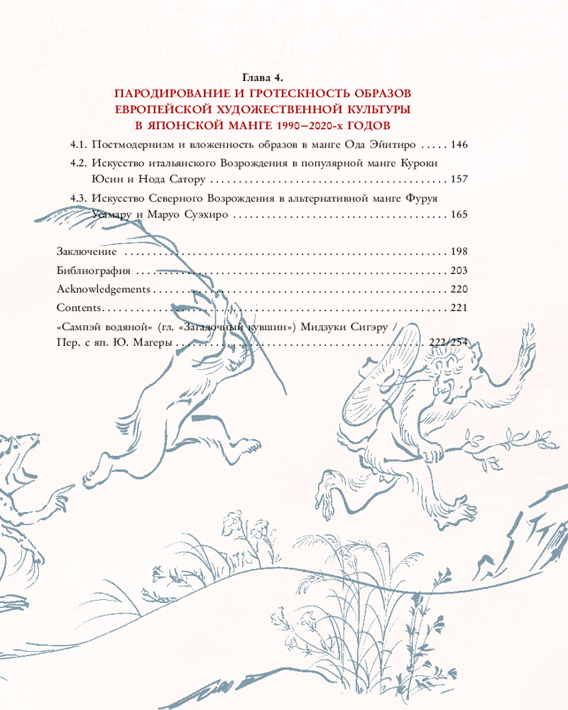 Эта книга представляет собой первое в отечественном японоведении исследование механизмов социокультурного трансфера вербальных и графических образов из западной литературы, живописи, скульптуры, анимации и кинематографа в такую восточную разновидность комикса, как манга. На примере классических и современных произведений («Божественная комедия», «Преступление и наказание», «Смерть в Венеции» и др.) продемонстрировано, как японские авторы манги, используя приемы цитирования, стилизации или пародирования (иронизм), по-разному обыгрывают заимствованные образы европейской художественной культуры и подчиняют их своим творческим нуждам. Автор анализирует комиксы Тэдзука Осаму («Могучий Атом», «Принцесса-рыцарь»), Мидзуки Сигэру («Ночные истории Китаро»), Икэда Риёко («Роза Версаля»), Хагио Мото («Сердце Томаса»), Такэмии Кэйко («Достичь Терры»), Нагаи Го («Девилмен»), Ода Эйитиро («One Piece»), Нода Сатору («Golden Kamuy»), Маруо Суэхиро и др. Также впервые на русском языке представлен перевод главы манги Мидзуки Сигэру «Сампэй водяной». Прекрасно иллюстрированное издание станет замечательным подарком любителям манги, комиксов, поклонникам японского и европейского искусства, а также японистам, культурологам, искусствоведам и всем интересующимся кросс-культурными исследованиями. |