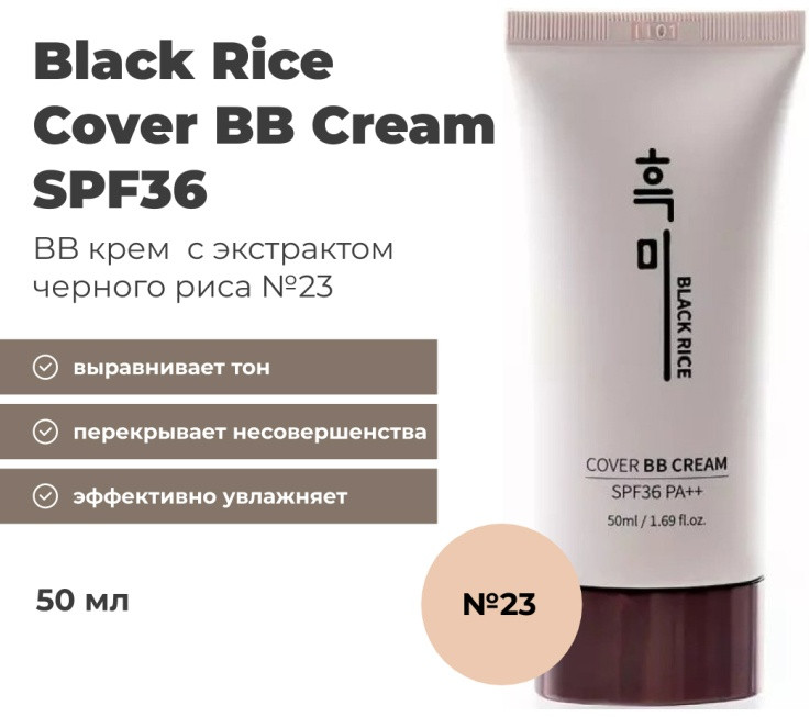 Ультра лёгкий ВВ-крем, который совмещает в себе свойства корректирующего и уходового продуктов: он не только маскирует, но и эффективно устраняет несовершенства твоей кожи. Главный активный компонент BB-крема — экстракт черного риса, волшебные свойства которого давно известны народам Азии. Черный рис является мощным природным антиоксидантом. Он борется с первопричиной старения — свободными радикалами — и продлевает молодость. Черный рис в составе BB-крема Black Rice Cover BB Cream успешно справляется со всеми проблемами зрелой кожи лица. Придает лицу здоровый и ровный оттенок. Обеспечивает стойкое покрытие, которое не течет и не скатывается даже во время дождя и ветра. Не только маскирует, но и устраняет воспаления и пигментные пятна. Разглаживает имеющиеся морщины и предотвращает появление новых. Возвращает твоей коже упругость и эластичность. Глубоко увлажняет и питает клетки эпидермиса полезными элементами. Идеальный макияж и уход за кожей в одном флаконе!