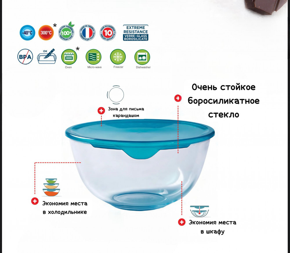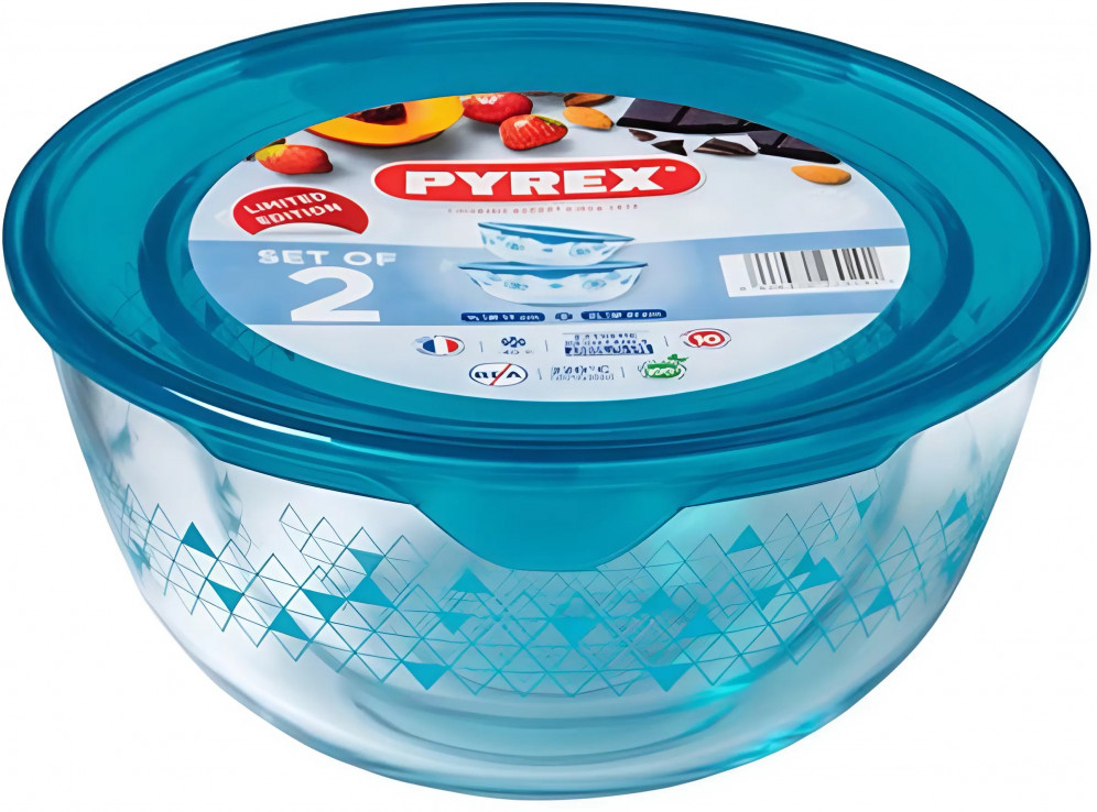 Pyrex Набор мисок стелкянных с крышками «Треугольник»