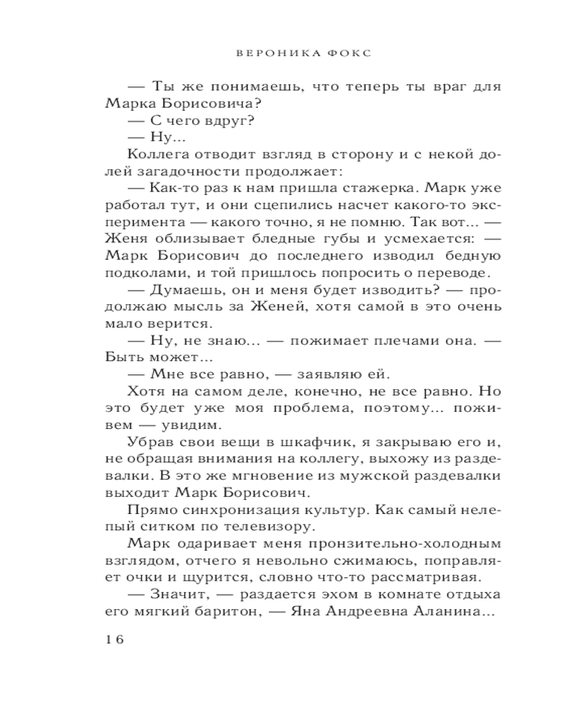 💳 Оплатить за товар можно при получении 🇰🇿 Есть бесплатная доставка по Казахстану от 1 дня 🎁 Копите бонусы с каждой покупки Серия: Все грани любви. Романы Вероники Фокс Книги Вероники Фокс — это чувственные истории о первой любви, которые задевают за живое, заставляют сопереживать героям и радоваться за них, как за своих давних знакомых. Яна Аланина обожает молекулярную биологию, но терпеть не может своего коллегу доктора Марка Робера. Она считает его высокомерным снобом, наглецом и хамом, который постоянно отпускает язвительные шуточки в сторону своих коллег. Доктор Робер тоже недолюбливает Яну и старается побольнее подколоть ее и вывести из себя. |