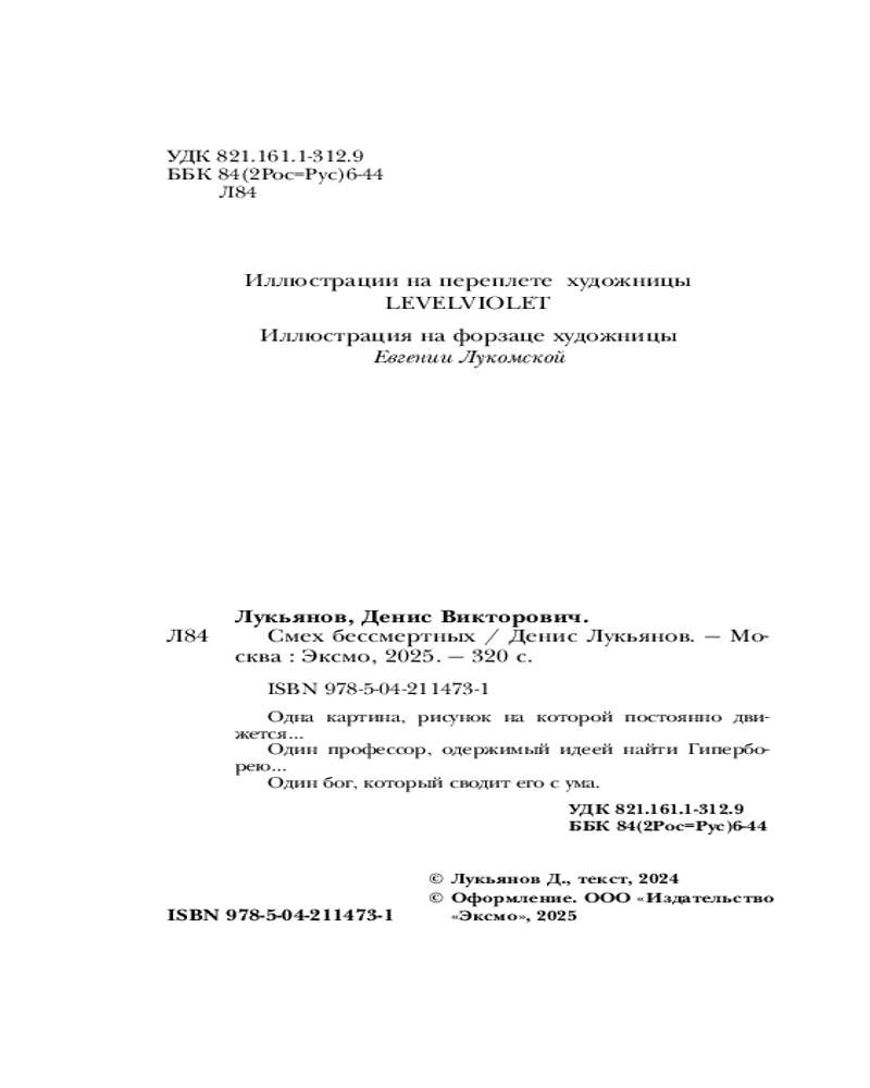💳 Оплатить за товар можно при получении 🇰🇿 Есть бесплатная доставка по Казахстану от 1 дня 🎁 Копите бонусы с каждой покупки Серия: Призрачный след: новый мистический детектив Когда профессору Грециону Родосскому ставят смертельный диагноз, он решает отыскать бессмертие и доказать существование мифической Гипербореи. Но что, если никто не воспримет его всерьез, а бог Дионис начнет постепенно сводить с ума? Погружаясь в глубины безумия, профессор теряет связь с реальностью, а его друг-художник становится хроникером мрачных событий и проклинает себя за то, что нарисовал картину, которая движется и, быть может, проклята. |