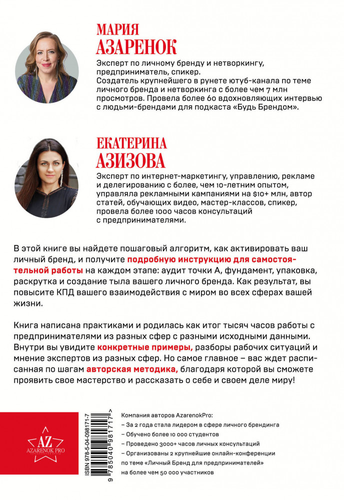 💳 Оплатить за товар можно при получении 🇰🇿 Есть бесплатная доставка по Казахстану от 1 дня 🎁 Копите бонусы с каждой покупки Серия: Бизнес Молодость. Книги для начинающих предпринимателей Настольная инструкция предпринимателя и самозанятого человека о том, как и зачем строить личный бренд. 100 самых острых и часто встречающихся вопросов про личный бренд из онлайн и оффлайн практики Марии Азаренок, на них даны инструкции-ответы, подкрепленные живыми историями и примерами людей — брендов из авторского подкаста. |