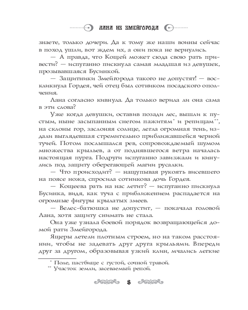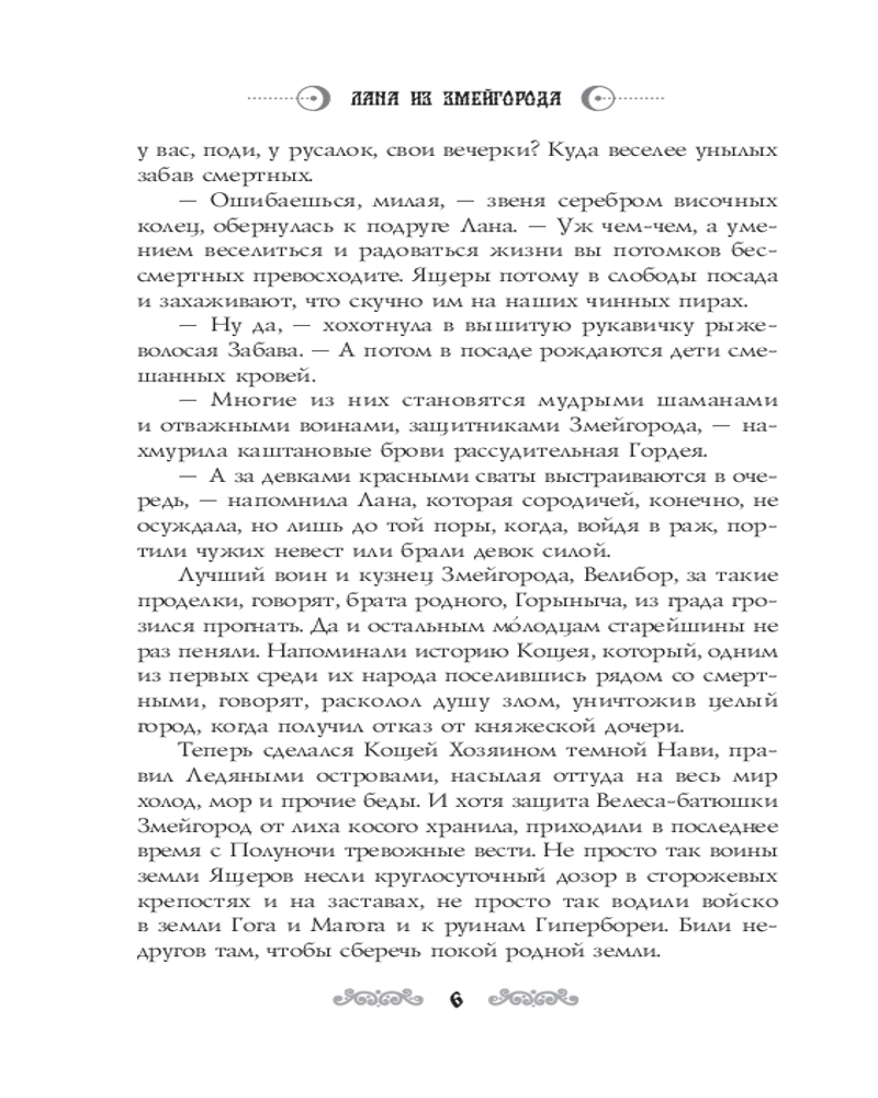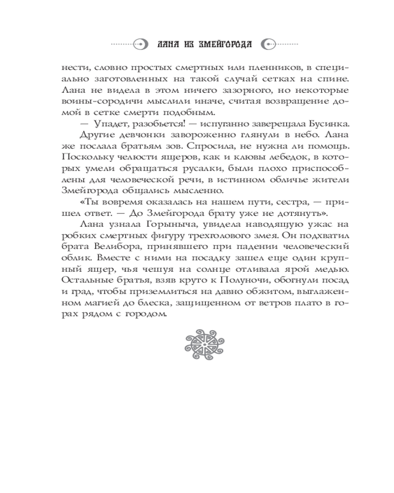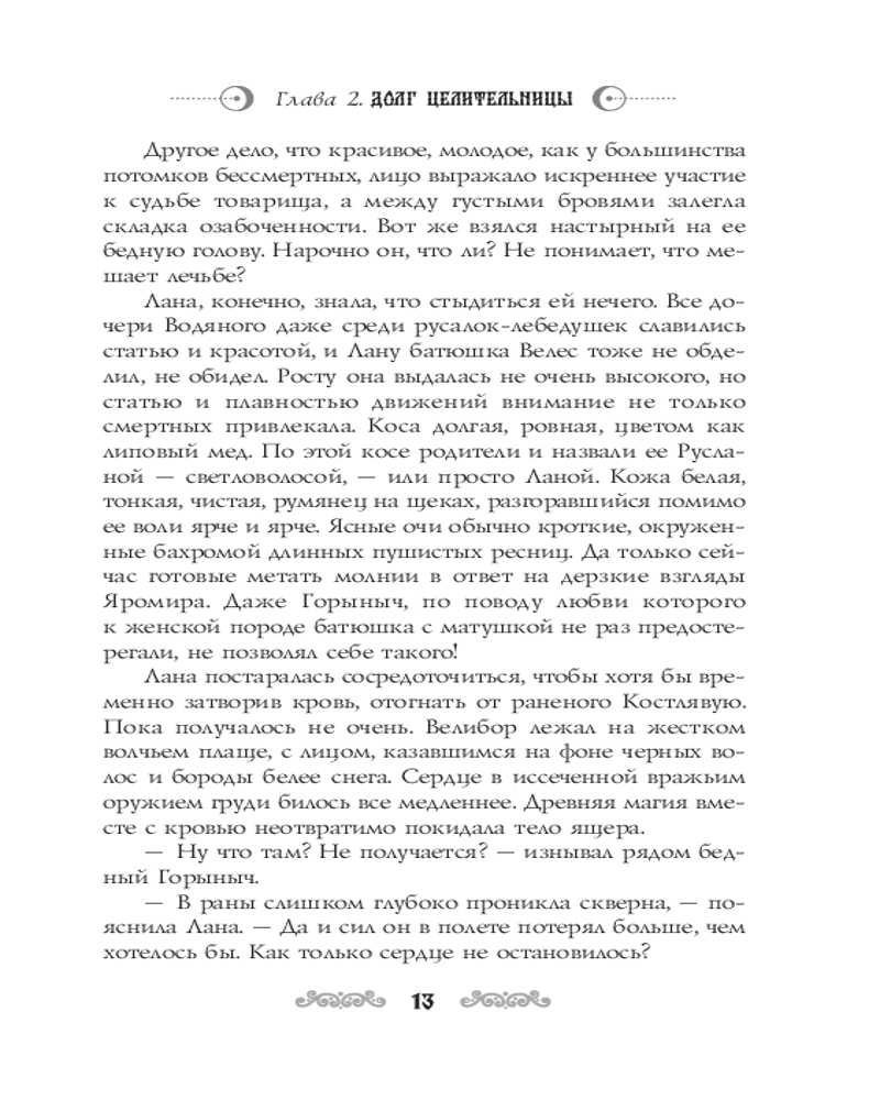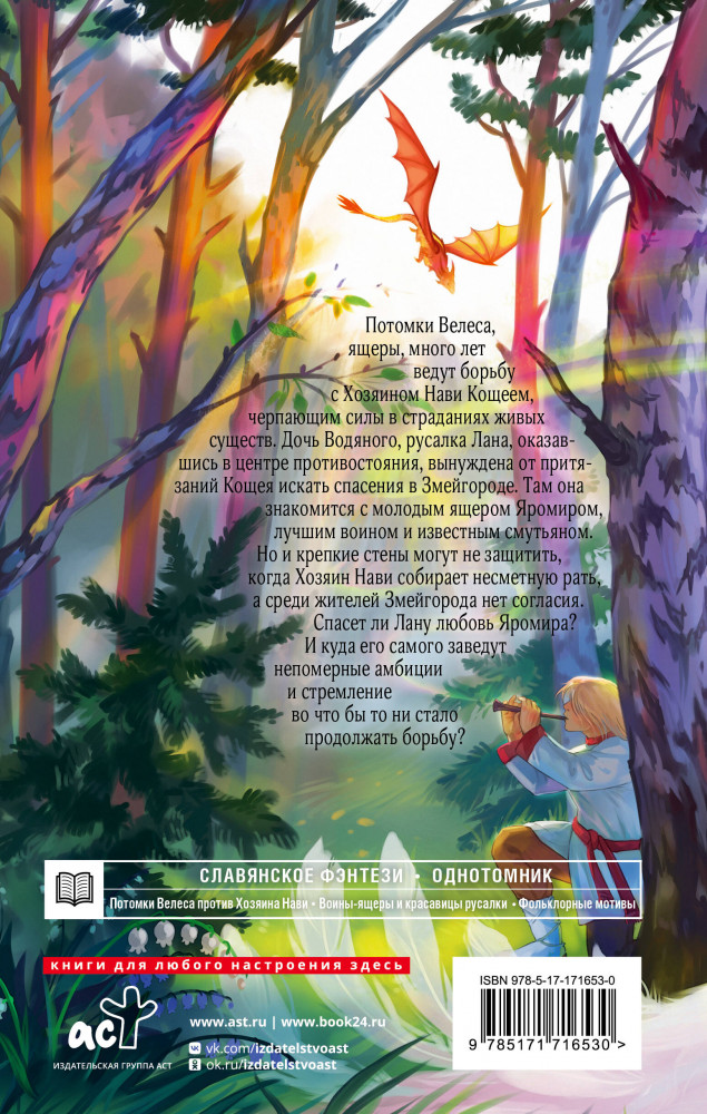 Серия: Новое славянское фэнтези Потомки Велеса, ящеры, много лет ведут борьбу с Хозяином Нави Кощеем, черпающим силы в страданиях живых существ. Дочь Водяного, русалка Лана, оказавшись в центре противостояния, вынуждена от притязаний Кощея искать спасения в Змейгороде. Там она знакомится с молодым ящером Яромиром, лучшим воином и известным смутьяном. Но и крепкие стены могут не защитить, когда Хозяин Нави собирает несметную рать, а среди жителей Змейгорода нет согласия. Спасет ли Лану любовь Яромира? И куда его самого заведут непомерные амбиции и стремление во что бы то ни стало продолжать борьбу? |
