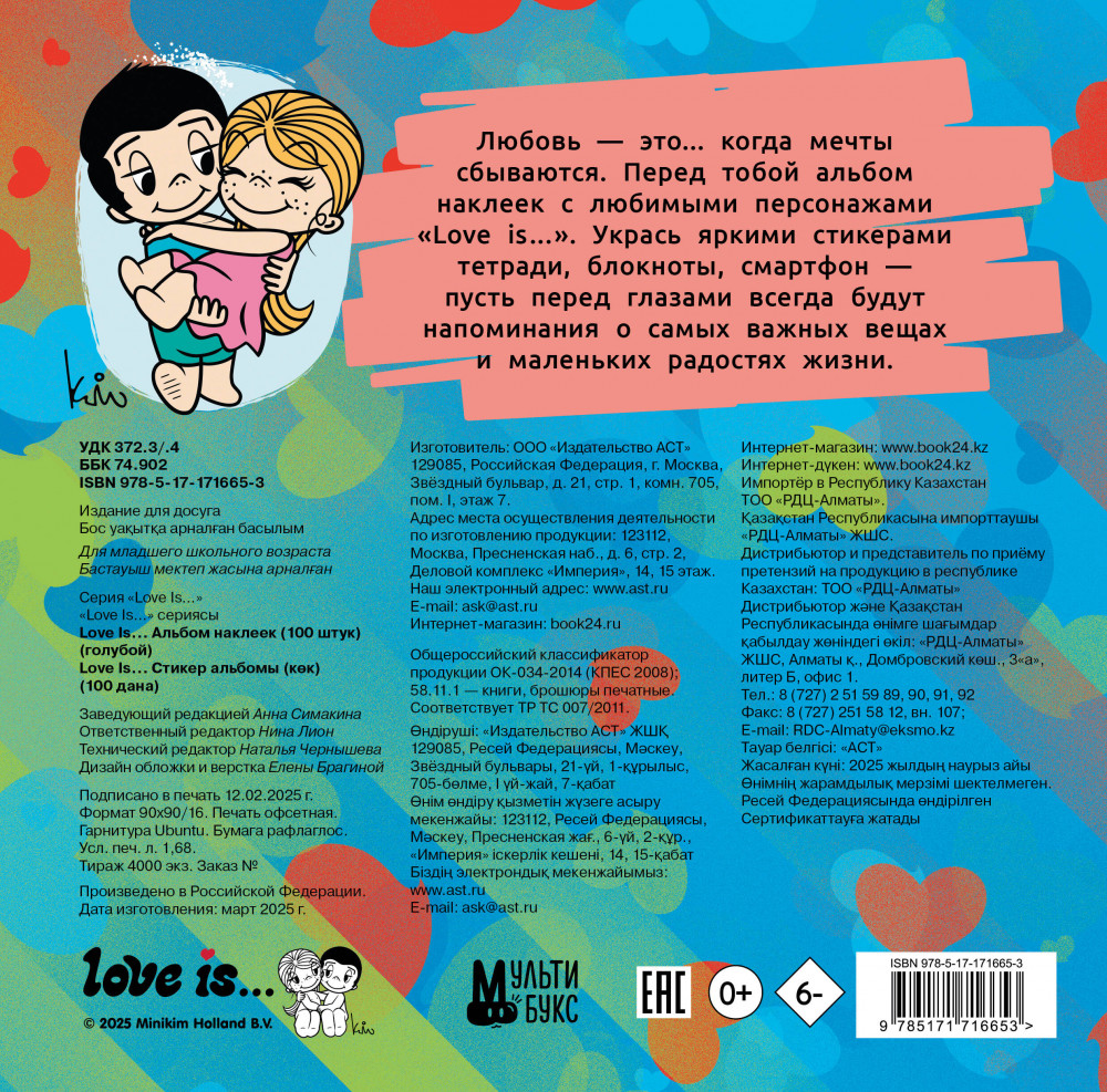 Серия: Love is… Любовь — это... когда мечты сбываются. Перед тобой альбом наклеек с любимыми персонажами «Love is...». Укрась яркими стикерами тетради, блокноты, смартфон — пусть перед глазами всегда будут напоминания о самых важных вещах и маленьких радостях жизни. |