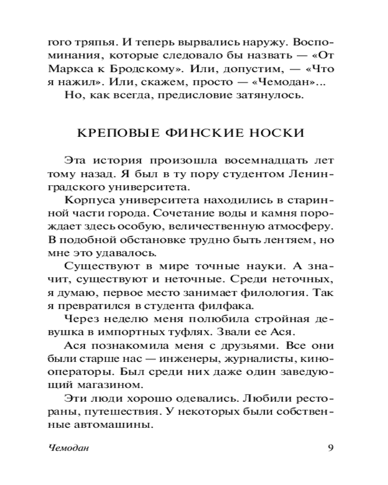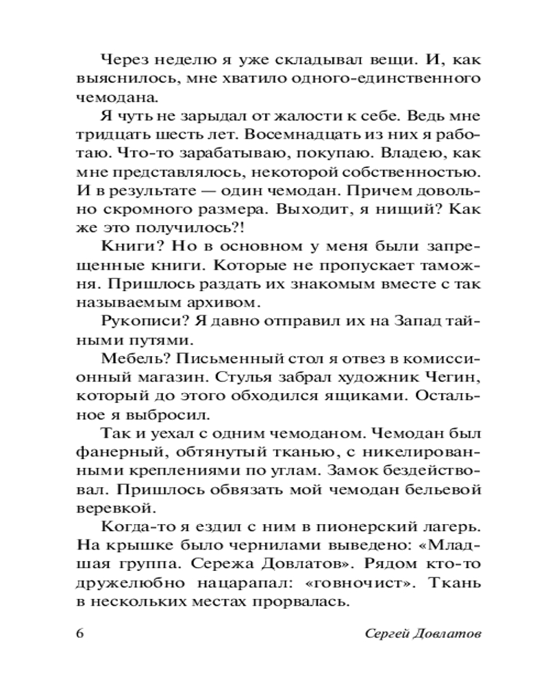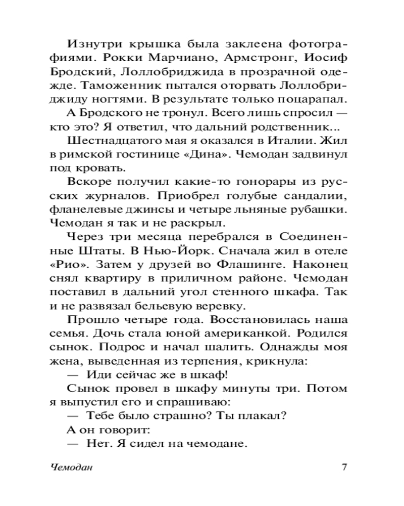 💳 Оплатить за товар можно при получении 🇰🇿 Есть бесплатная доставка по Казахстану от 1 дня 🎁 Копите бонусы с каждой покупки Серия: Эксклюзив: Русская классика «Чемодан» — знаковый для творчества Довлатова сборник иронических рассказов-зарисовок о небольшом чемодане, который главный герой, покидая родину, взял с собой. Распаковав его через несколько лет, он обнаружил в чемодане двубортный костюм, вельветовую куртку, три пары финских креповых носков, зимнюю шапку из фальшивого котика — абсолютно ненужные в новой жизни, но дорогие сердцу вещи, с каждой из которых связана драматическая, смешная или нелепая история... |