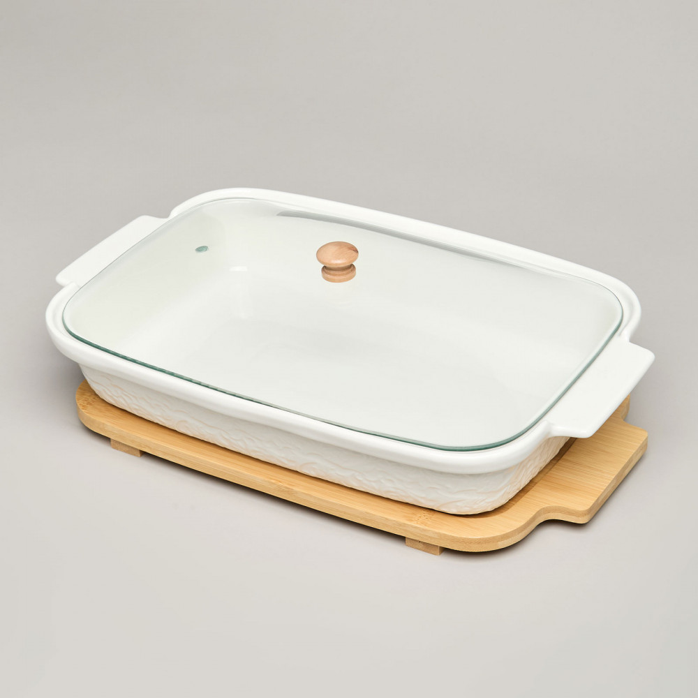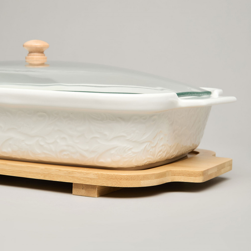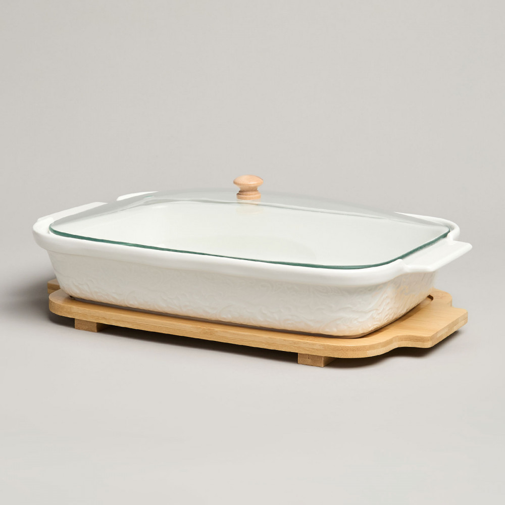 Lefard Блюдо для выпекания и сервировки со стеклянной крышкой на деревянной подставке «Muse»