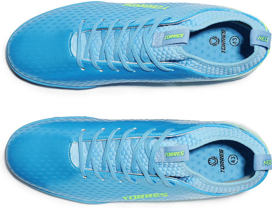 Бутсы футбольные (многошиповки) подростковые TORRES «Neo-J» разработаны специально для игры на искусственных газонах, жестких синтетических или грунтовых покрытиях. Модель «Neo-J» выполнена в современном дизайне с использованием ярких цветовых акцентов и передовых разработок. Верх обуви изготовлен из лаковой синтетической кожи — высококачественного полиуретана. Этот материал идеально подходит для спортивной обуви благодаря своей прочности, гибкости, легкости в уходе и хорошему контакту с мячом. Специально разработанная 3D-текстурированная поверхность носовой части служит для улучшения сцепления и контроля мяча. Верх многошиповок имеет удобную конструкцию с трикотажным эластичным носком, который обеспечивает хорошую посадку, отличную фиксацию, поддержку голеностопного сустава, а также дополнительную вентиляцию. Отсутствие внутреннего язычка облегчает регулировку полноты и обеспечивает плотность облегания с помощью симметричной шнуровки. Имеется пяточная петля для удобства обувания.