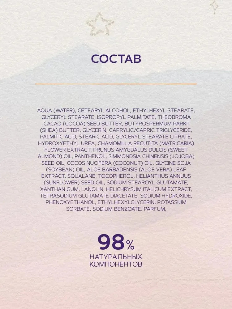 💳 Оплатить за товар можно при получении 🇰🇿 Есть бесплатная доставка по Казахстану от 1 дня 🎁 Копите бонусы с каждой покупки Серия: Mom & baby Сбалансированная натуральная формула крем-баттера с драгоценными маслами, витамином Е, ланолином и пантенолом помогает уменьшить видимость растяжек и предотвратить их появление, повышая и поддерживая эластичность кожи. Крем питает и увлажняет кожу, возвращает ей гладкость и упругость, полностью впитывается, не оставляя ощущения жирности. Не содержит силиконов, красителей и минеральных масел. |