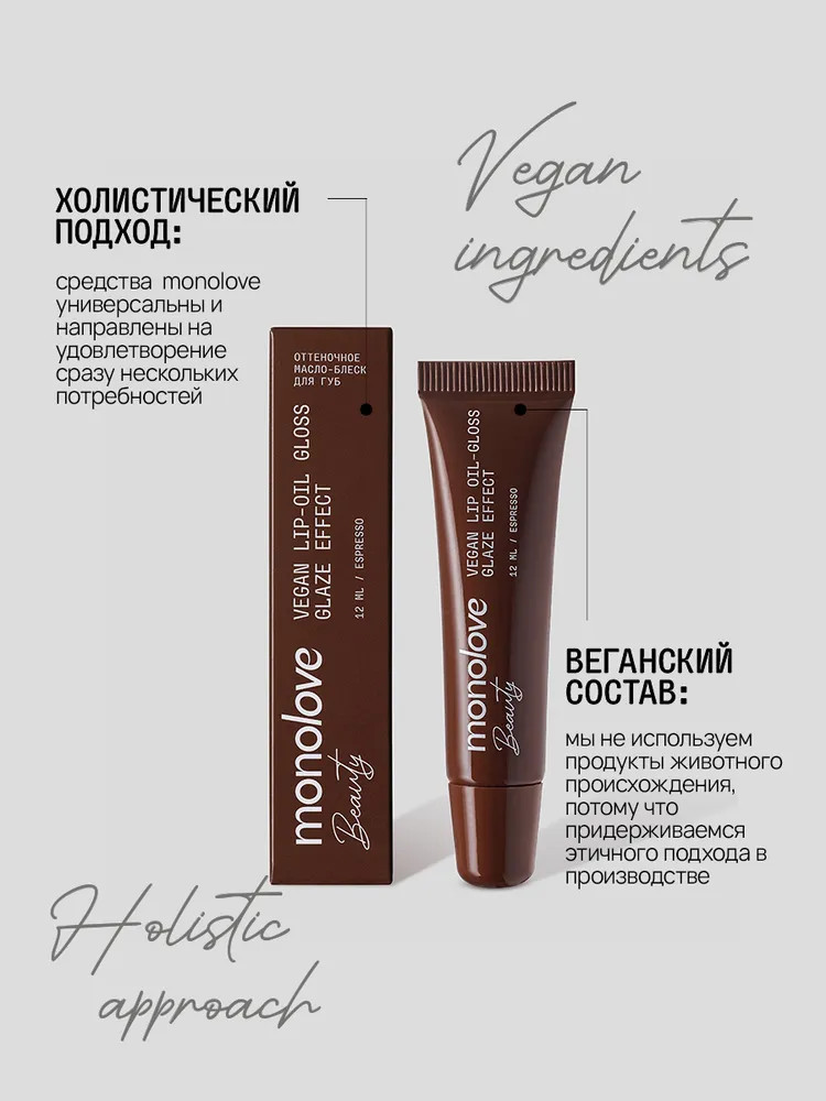 Monolove Масло-блеск для губ «Beauty Vegan Lip-Oil Gloss Glaze Effect», тон Espresso