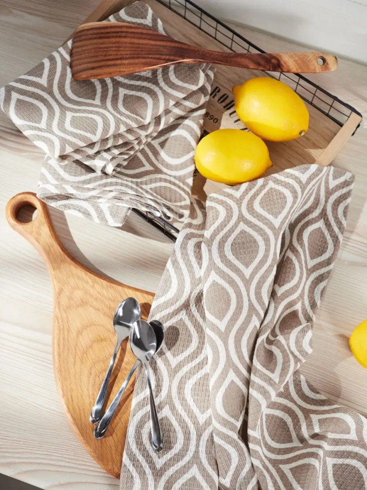 Guten Morgen Комплект кухонных полотенец «Верано»В данный момент этот товар отсутствует в продаже. Возможно, у нас найдется аналогичный или похожий товар здесь. Серия: Верано Набор вафельных полотенец от Guten Morgen — незаменимый аксессуар на кухне. Они не только мягкие и приятные на ощупь, но и прекрасно впитывают влагу. Материал «вафельное полотно» совершенно неприхотливый в уходе, при этом является прочным и долговечным. Кухонные полотенца не только удобные и функциональные, но и непременно стильные и красивые. Преимущества данных полотенец — использование гипоаллергенных, антибактериальных материалов. Кухонные полотенца идеально подходят для кухни, рук, для лица. Мягкие, красивые, плотностью 160 г/м². |