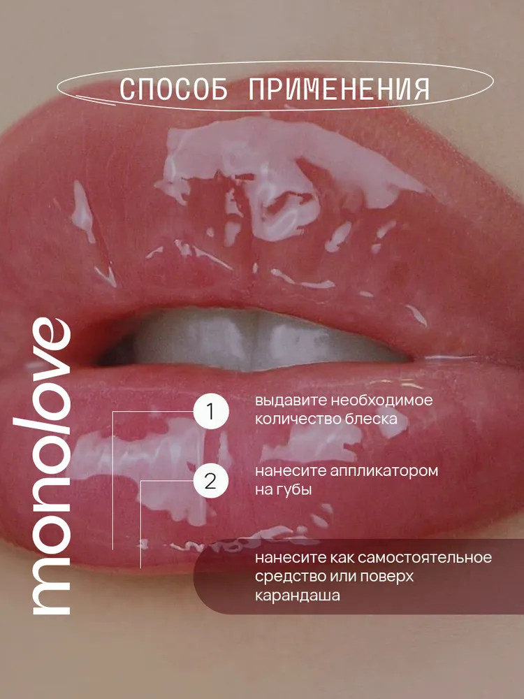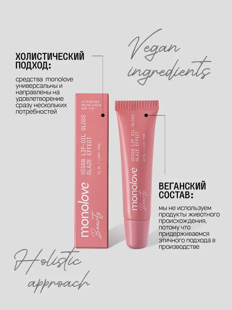Monolove Масло-блеск для губ «Beauty Vegan Lip-Oil Gloss Glaze Effect», тон Light Pink