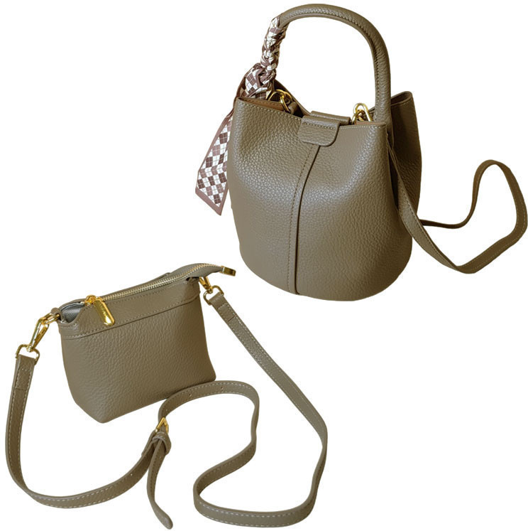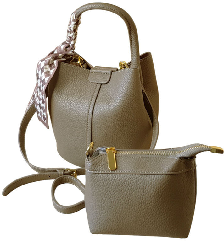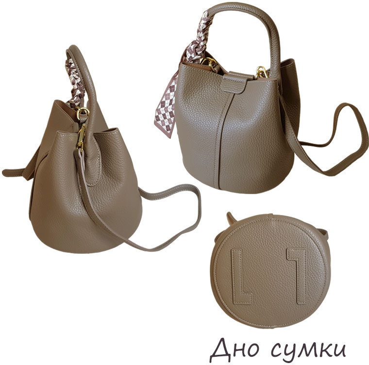 Данная сумка является комплектом, состоящим из двух единиц: непосредственно самой сумки (40×29×29 см) и сумочки-косметички (17×13 см), который можно разместить как внутри данной модели, так и носить отдельно. Комплект выполнен из мягкой экокожи, приятной на ощупь. Обратите внимание на такой важный момент, как легкость сумки, что является приятным дополнением к стильному дизайну данной модели. Комплект выполнен с высоким качеством: ровные строчки, аккуратная фурнитура, декоративные элементы. Обе сумки имеют металлические шлёвки для крепления ремня. Ремни легко регулируются по длине. Базовая сумка комплекта, закрывается при помощи магнита и боковых внутренних планок с кнопками. Декоративный шелковый платок, при желании, можно убрать.