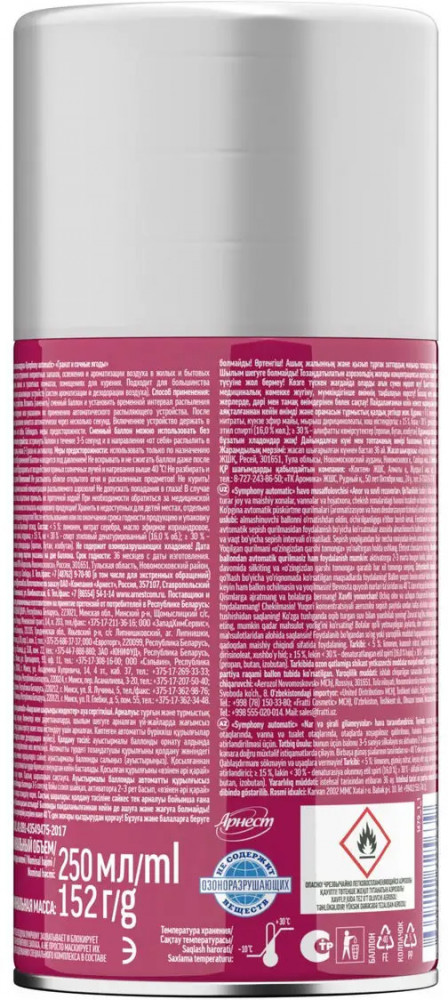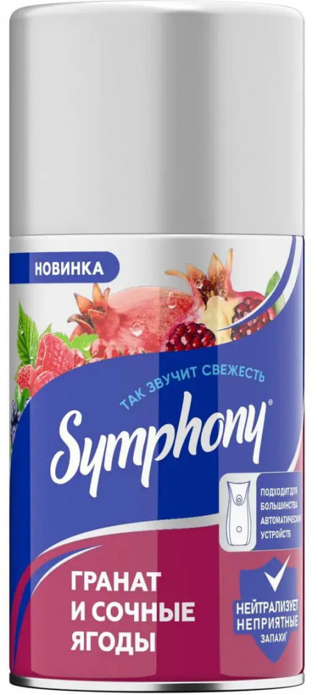 Освежитель воздуха «Symphony» создан для устранения неприятных запахов, освежения и ароматизации воздуха в жилых и бытовых помещениях, ванных и туалетных комнатах, помещениях для курения.