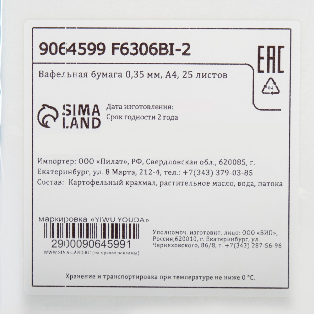 Тонкая вафельная бумага 0.35 мм формата А4 (21×29.7 см) для печати на принтере картинок для украшения и декора выпечки и тортов. Печать с помощью пищевых красителей, а также матирующих красок на профессиональном трансферном принтере. На бумаге можно сделать съедобное фото, цветы, картинку из любимого мультика вашего ребенка и с поздравлением в виде надписей — это станет идеальным декором, который способен мгновенно преобразить внешний вид праздничной кондитерской выпечки и продуктов питания. Съедобной фотопечатью можно украсить торт любой формы, получится красочный, четкий и, что самое главное, яркий съедобный декор.