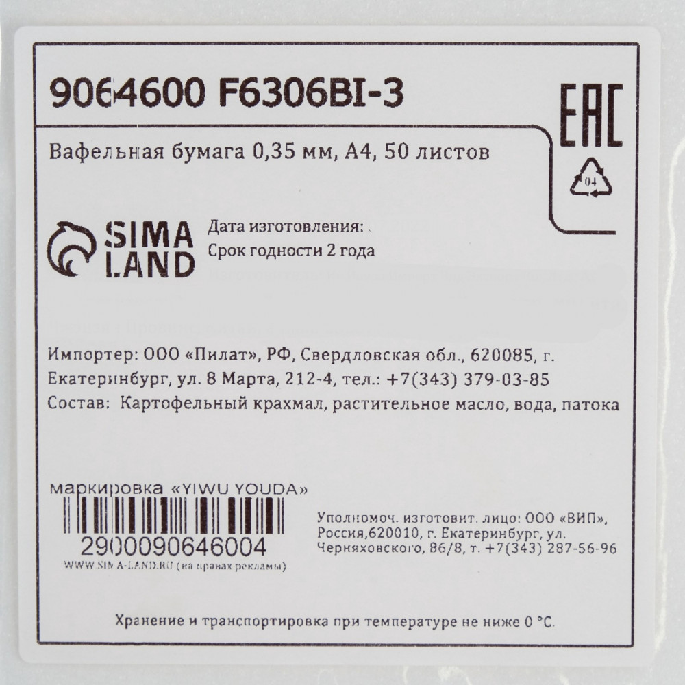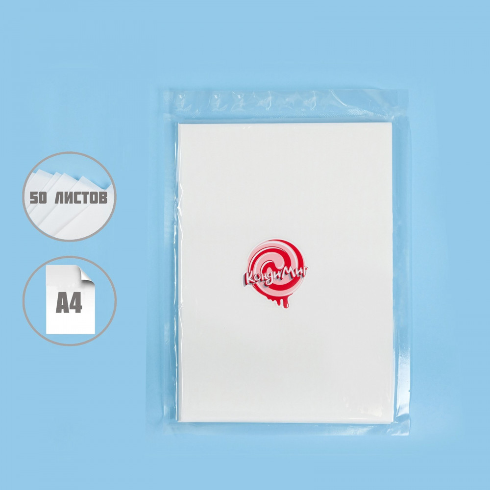 Тонкая вафельная бумага 0.35 мм формата А4 (21×29.7 см) для печати на принтере картинок для украшения и декора выпечки и тортов. Печать с помощью пищевых красителей, а также матирующих красок на профессиональном трансферном принтере. На бумаге можно сделать съедобное фото, цветы, картинку из любимого мультика вашего ребенка и с поздравлением в виде надписей — это станет идеальным декором, который способен мгновенно преобразить внешний вид праздничной кондитерской выпечки и продуктов питания. Съедобной фотопечатью можно украсить торт любой формы, получится красочный, четкий и, что самое главное, яркий съедобный декор.
