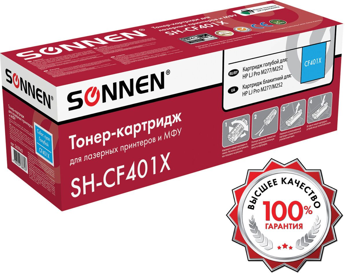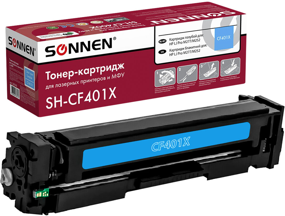 Совместимый картридж Sonnen (SH-CF401X) для HP Color Laser Jet M252/252N/252DN/252DW M277n/M277DW. Совместимые лазерные картриджи Sonnen – это оригинальное качество по доступной цене. Данная модель содержит ЧИП, подходит для лазерных принтеров и МФУ HP Color Laser Jet M252/252N/252DN/252DW M277n/M277DW.