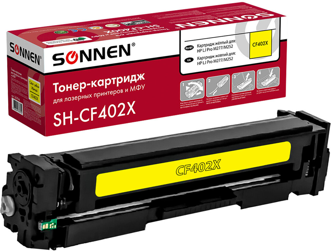Совместимый картридж Sonnen (SH-CF402X) для HP Color Laser Jet M252/252N/252DN/252DW M277n/M277DW. Совместимые лазерные картриджи Sonnen – это оригинальное качество по доступной цене. Данная модель содержит ЧИП, подходит для лазерных принтеров и МФУ HP Color Laser Jet M252/252N/252DN/252DW M277n/M277DW. Картридж повышенной емкости. Ресурс – 2300 страниц. Картриджи Sonnen обладают четкой цветопередачей, что обеспечивает высокое качество печати с первой до последней страницы.