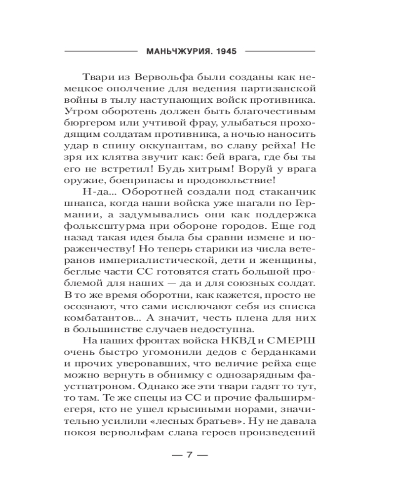 Серия: Военная боевая фантастика Июль 1945-го. Война окончена, но в Германии все еще действуют диверсионные группы вервольфов, а в Курляндском котле продолжается упорное сопротивление эсэсовцев, прорывающихся на шведский Готланд. Два капитана — разведчик и артиллерист — продолжают воевать с врагом в надежде на скорое возвращение домой... Но их ждет не дом, а Маньчжурия, не мир — а новая война. |