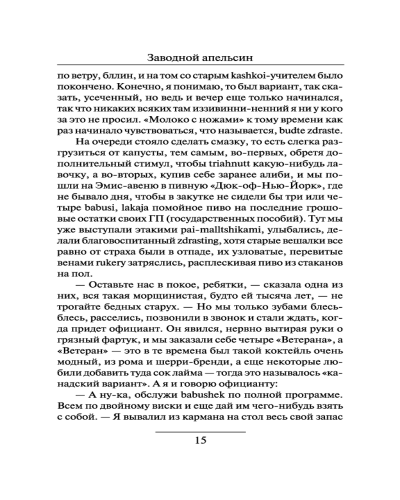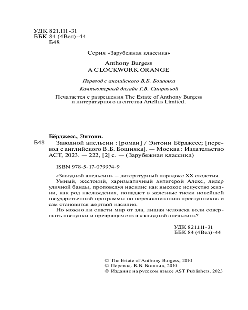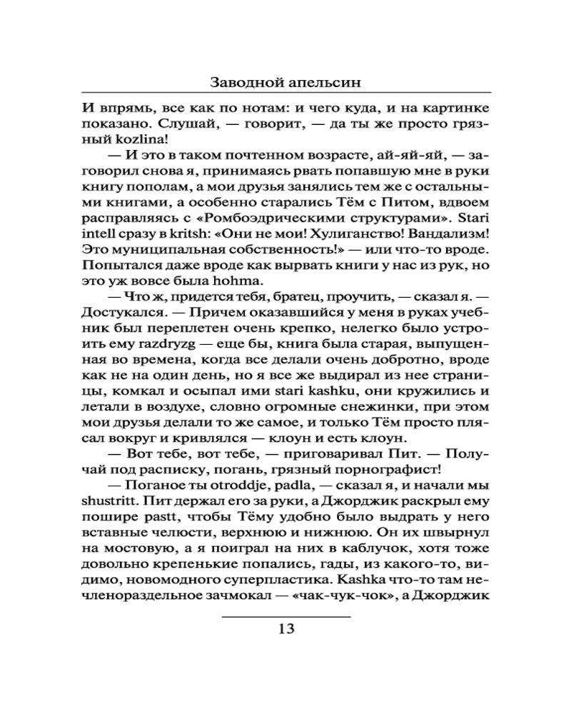 💳 Оплатить за товар можно при получении 🇰🇿 Есть бесплатная доставка по Казахстану от 1 дня 🎁 Копите бонусы с каждой покупки Серия: Зарубежная классика «Заводной апельсин» — литературный парадокс ХХ столетия. Продол-жая футуристические традиции в литературе, экспериментируя с языком, на котором говорит рубежное поколение malltshipalltshikov и kisok «надсатых», Энтони Бёрджесс создает роман, признанный классикой современной литературы. |
