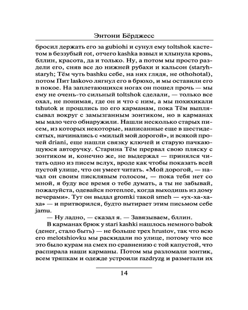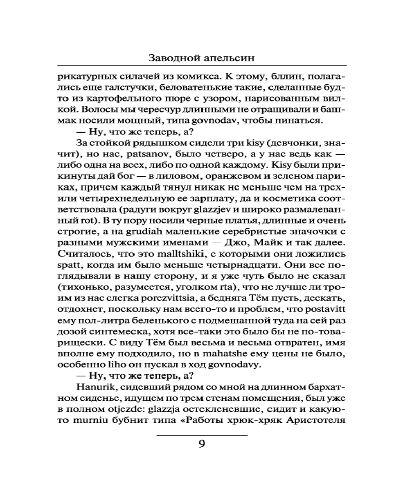 💳 Оплатить за товар можно при получении 🇰🇿 Есть бесплатная доставка по Казахстану от 1 дня 🎁 Копите бонусы с каждой покупки Серия: Лучшая мировая классика «Заводной апельсин» — литературный парадокс ХХ столетия. Продолжая футуристические традиции в литературе, экспериментируя с языком, на котором говорит рубежное поколение malltshipalltshikov и kisok «надсатых», Энтони Бёрджесс создает роман, признанный классикой современной литературы. |