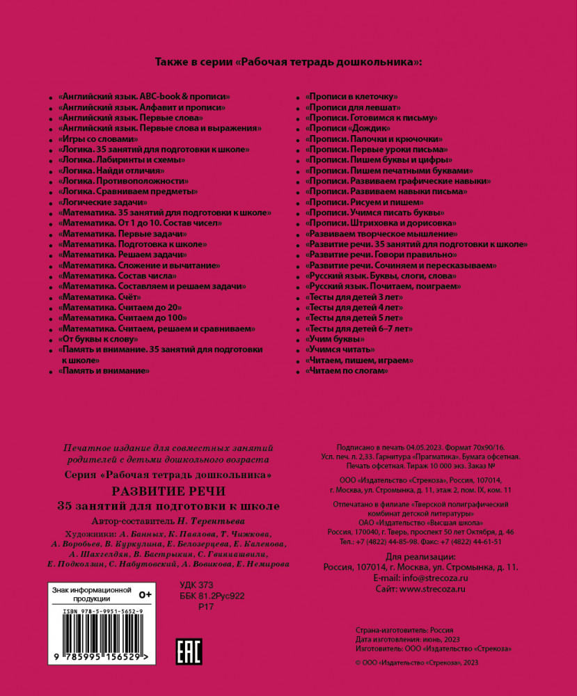Рабочая тетрадь дошкольника. Развитие речи. 35 занятий для подготовке к школе-34% +4