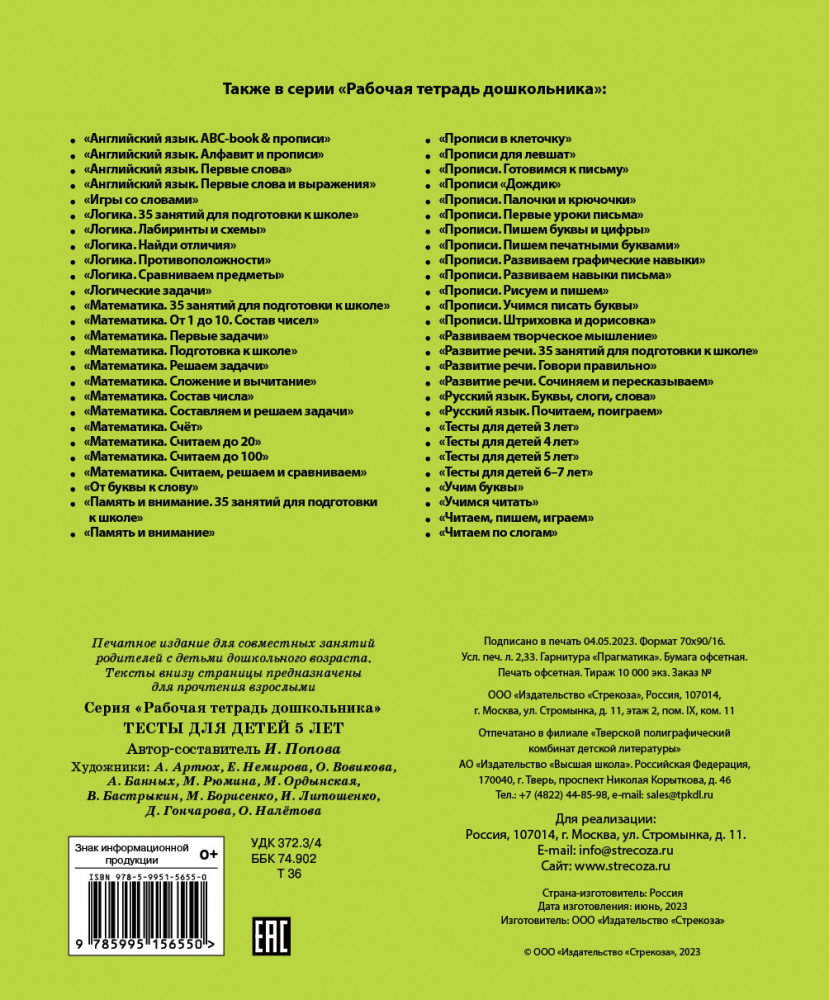 Рабочая тетрадь дошкольника. Тесты для детей 5 лет-40% +11
