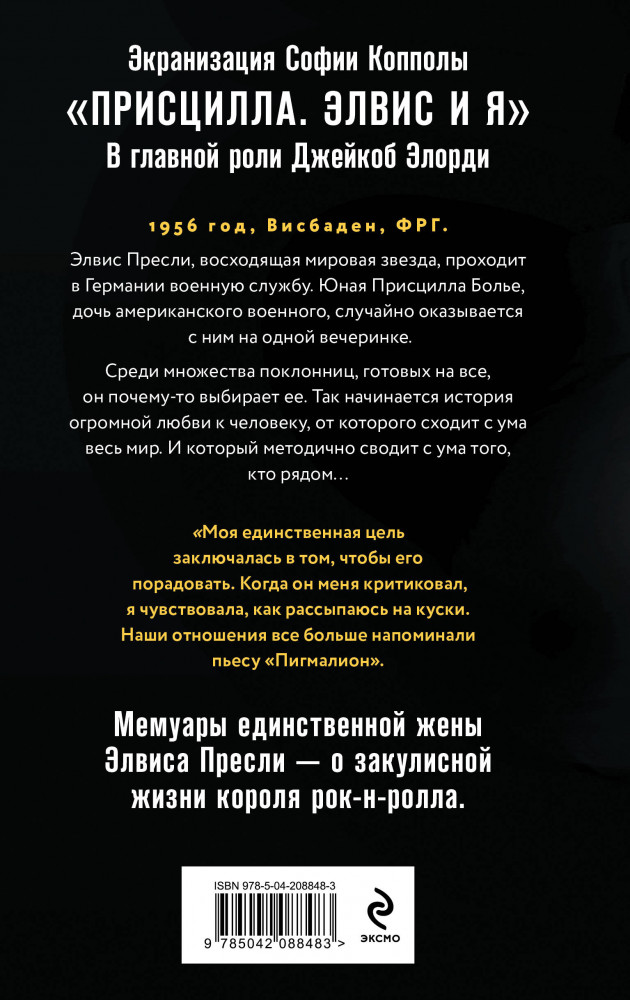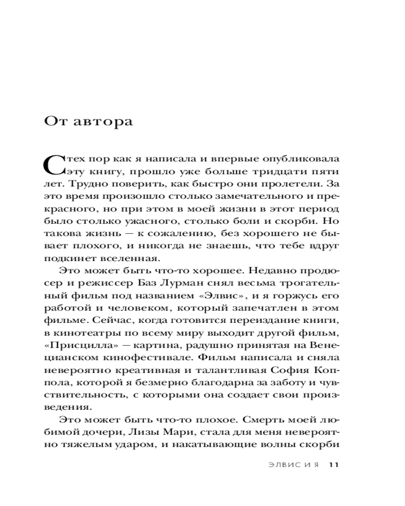 Серия: Автобиография-бестселлер Экранизация в фильме Софии Копполы «Присцилла. Элвис и я». В главной роли Джейкоб Элорди. Мемуары единственной жены Элвиса Пресли — о закулисной жизни короля рок-н-ролла.