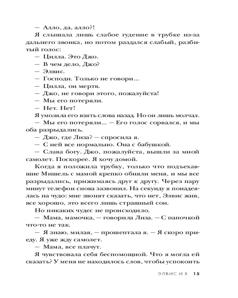 Впервые ее собственными словами Присцилла рассказывает историю их с Элвисом любви, раскрывая подробности их романа, противоречивого и сложного брака, развода и неразрывной связи, которая сохранилась даже после его трагической смерти. Посвященная и человеку, и легенде, книга «Элвис и я» предоставляет уникальный взгляд на настоящую жизнь короля рок-н-ролла и женщины, любившей его, несмотря ни на что.