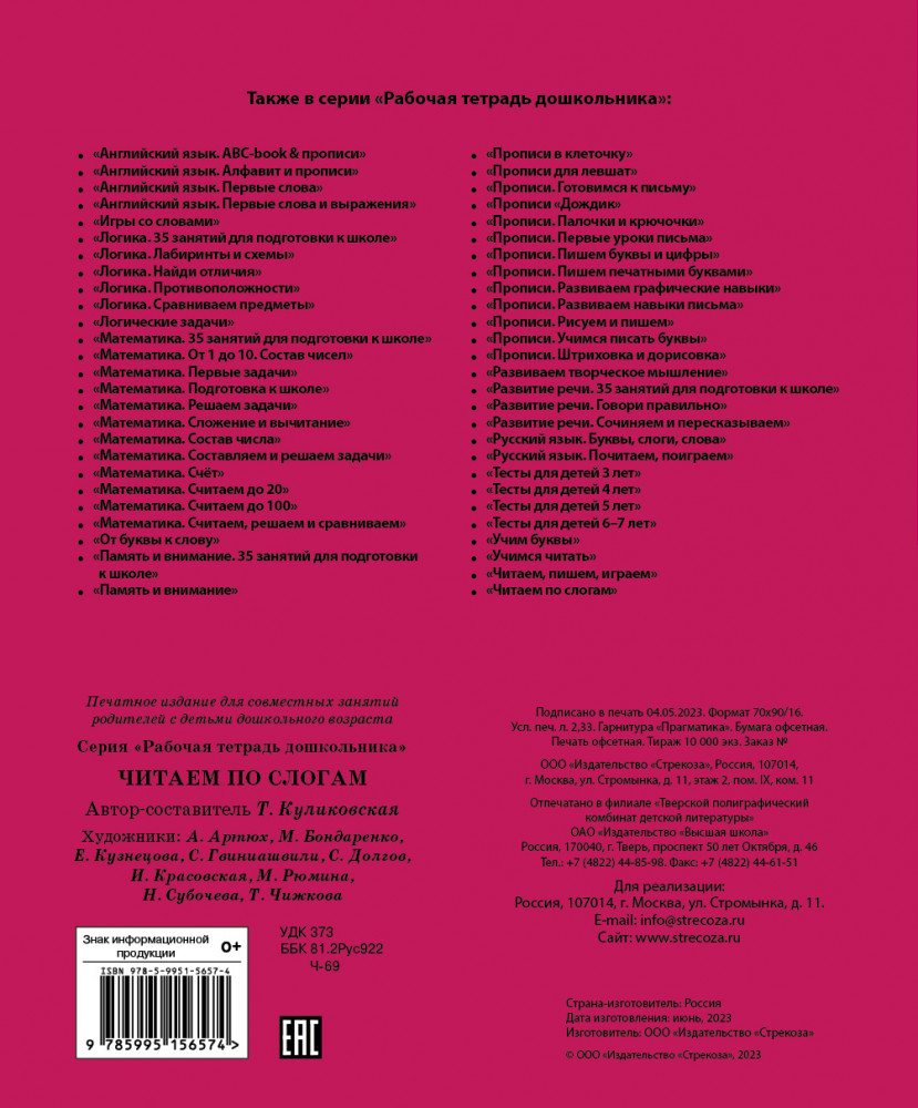 💳 Оплатить за товар можно при получении 🇰🇿 Есть бесплатная доставка по Казахстану от 1 дня 🎁 Копите бонусы с каждой покупки Рабочая тетрадь предназначена для закрепления, дополнения и систематизации навыков чтения по слогам у ребёнка старшего дошкольного возраста. Для совместных занятий родителей с детьми дошкольного возраста. |