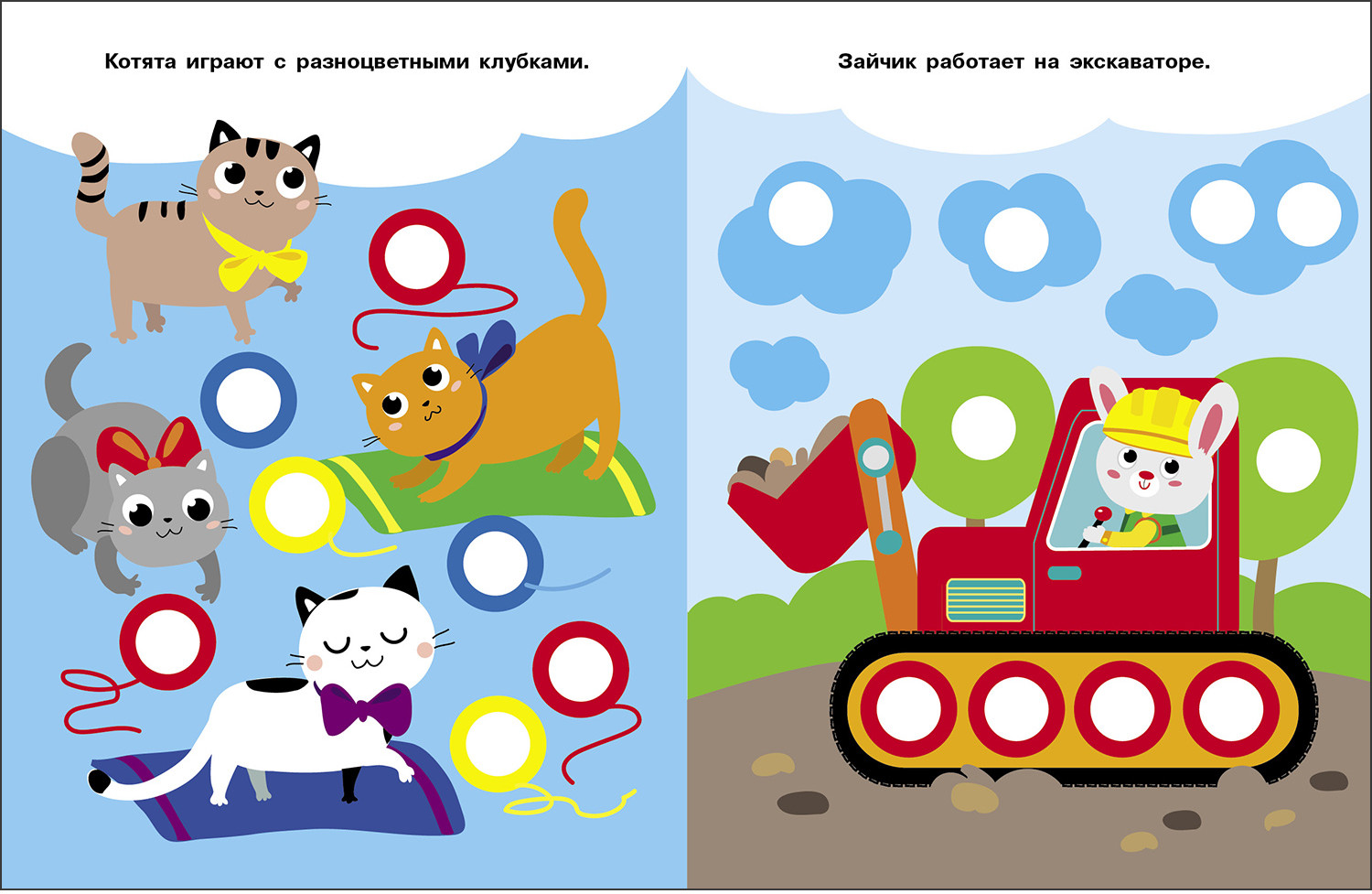 Приклеивая на картинки в этой книге яркие разноцветные многоразовые наклейки — кружочки, ваш малыш сможет повторять названия цветов и предметов, развивать мелкую моторику и усидчивость. |